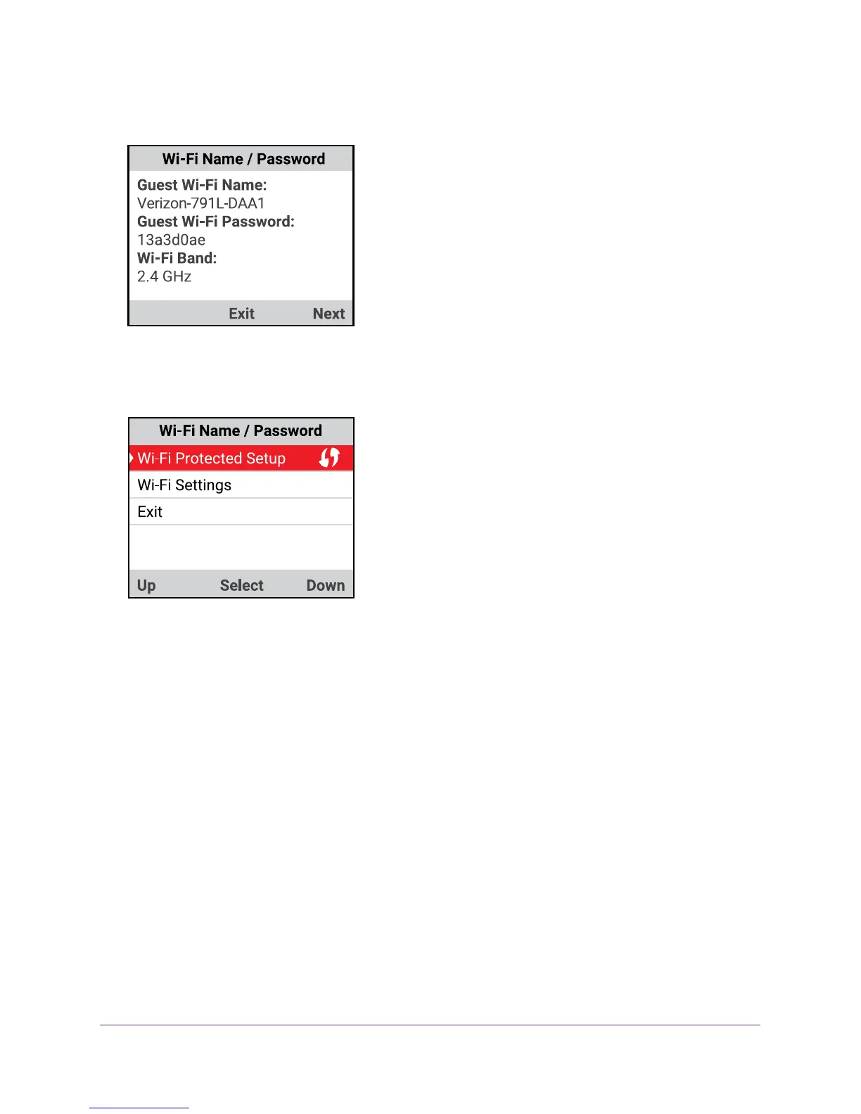 The center and right Navigation/Select buttons correspond to the onscreen Exit and Next