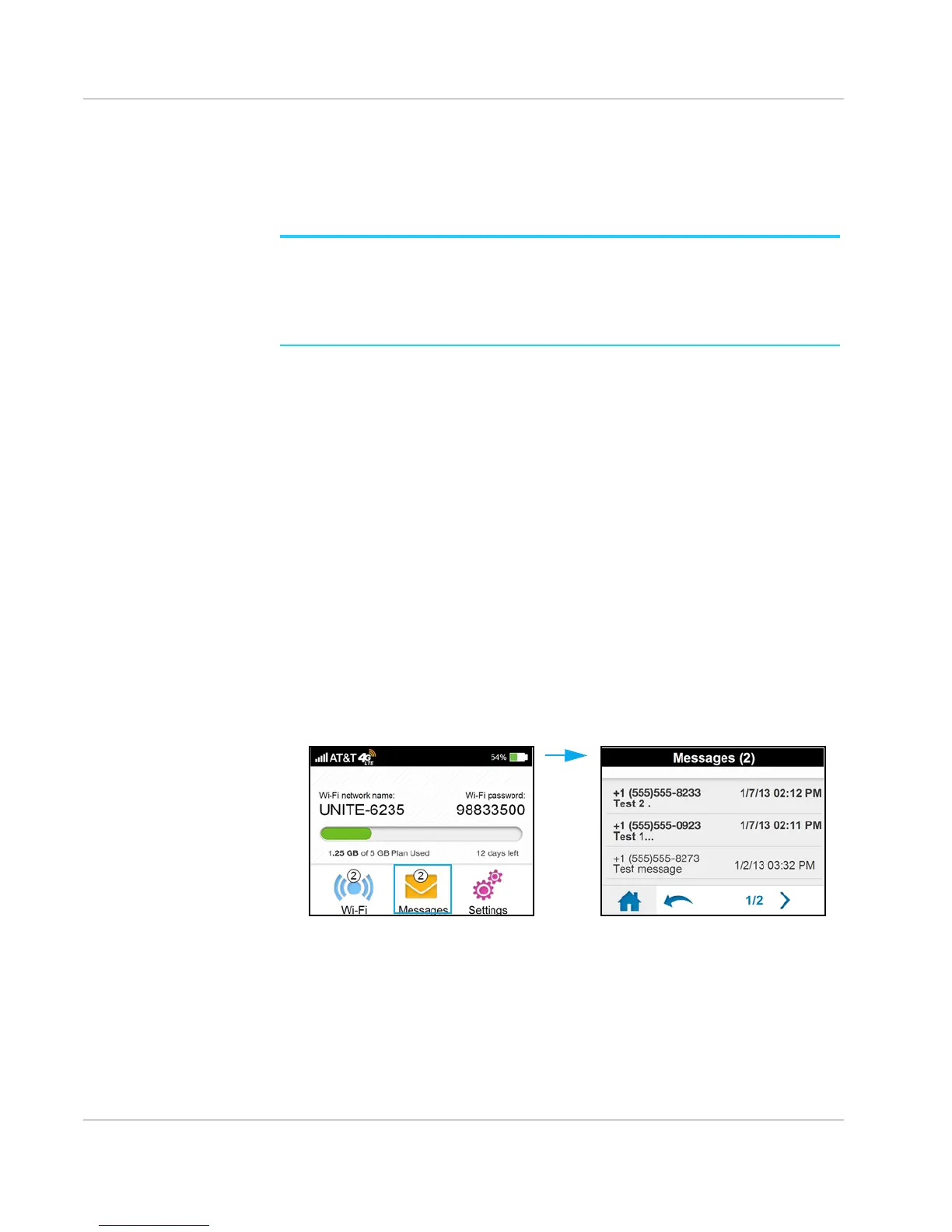 You can view SMS messages from AT&T on the LCD touchscreen or Unite Manager.