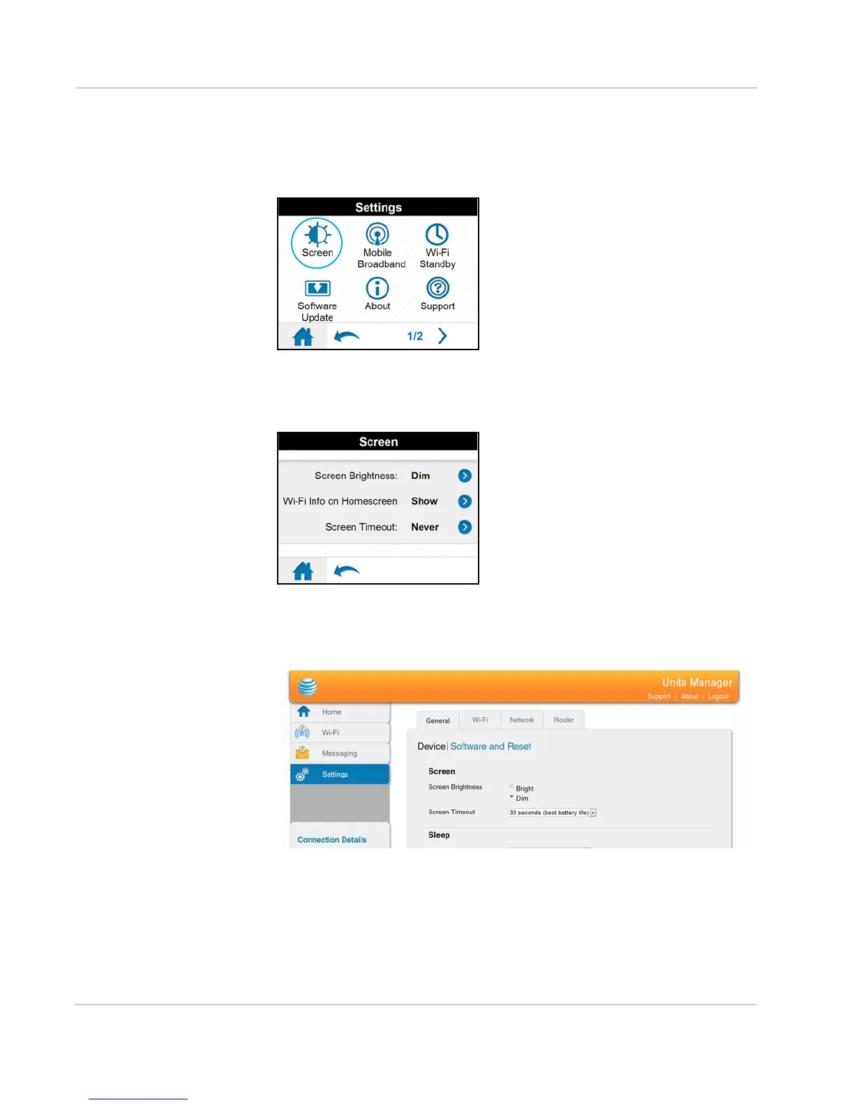 · Screen Brightness — Tap Screen Brightness, then select Dim.