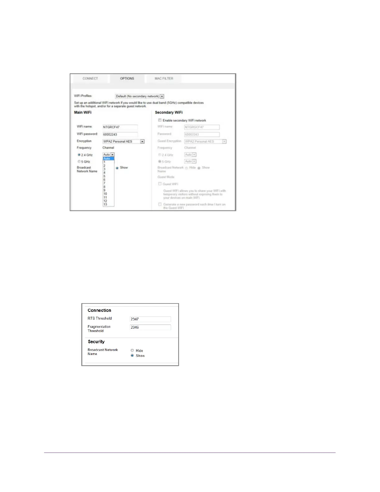 • Fragmentation Threshold. The largest allowable size (in bytes) for a packet.