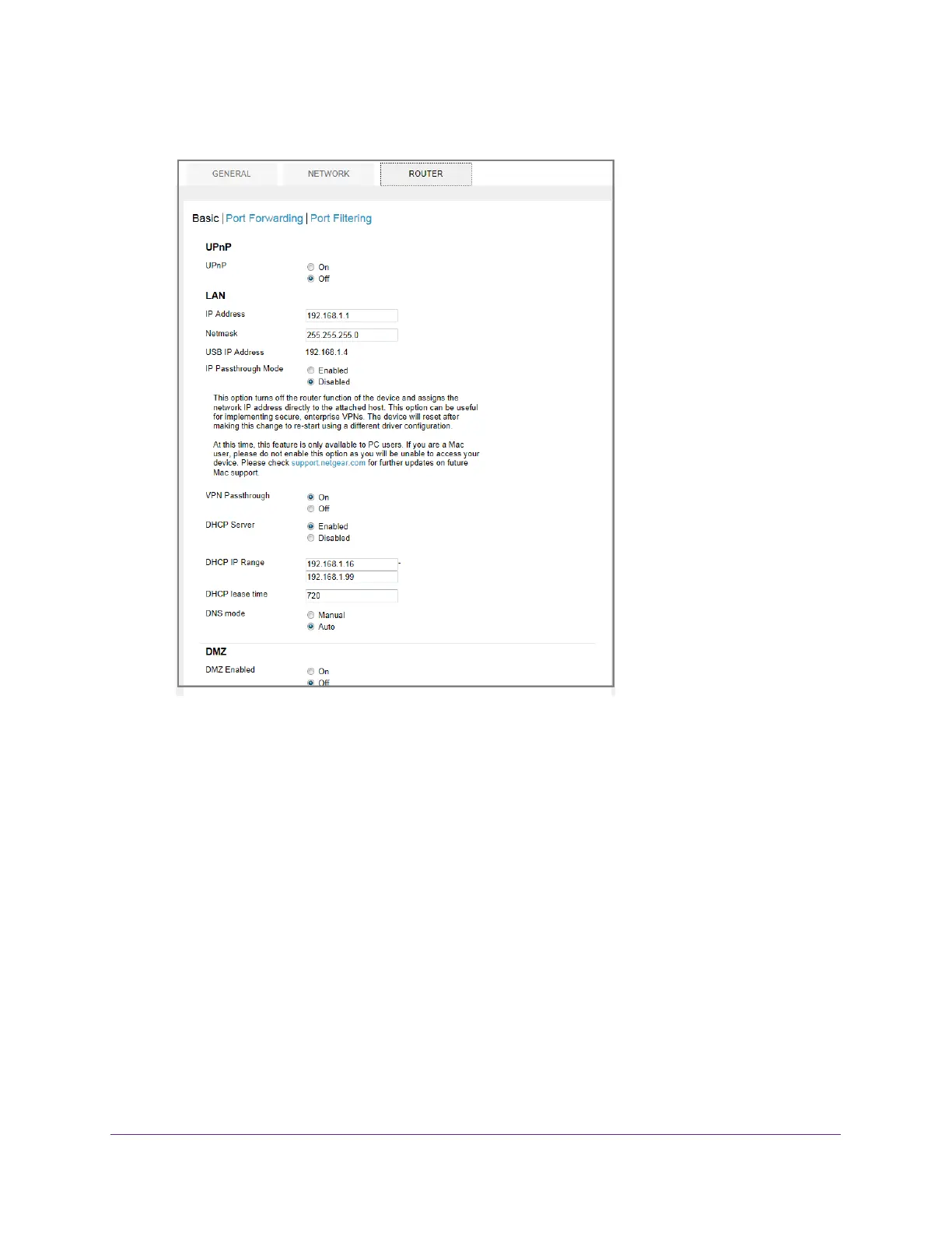 6. In the LAN section, select the IP Passthrough Mode Enabled radio button.