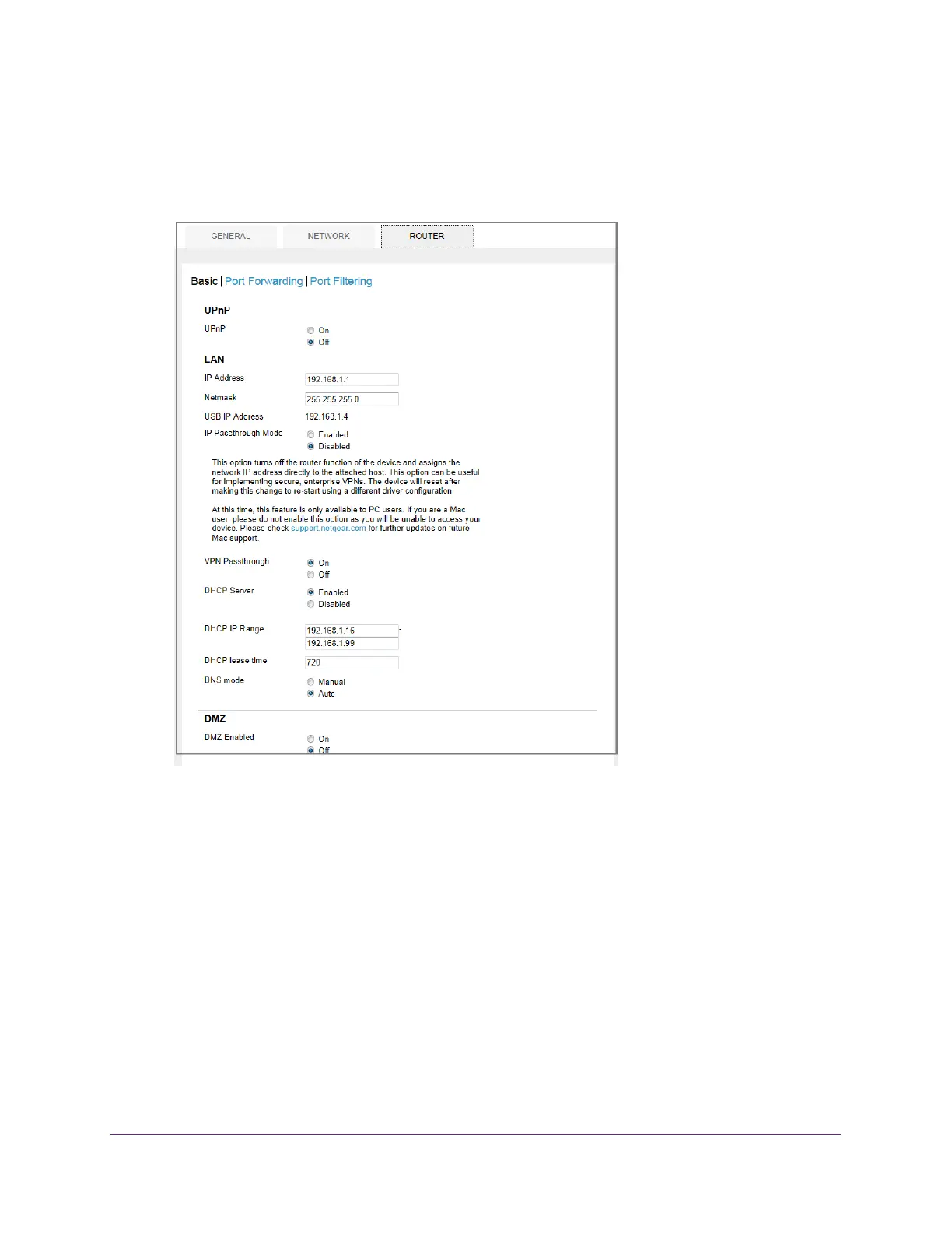 6. In the LAN section, click the VPN Passthrough Mode Enabled radio button.