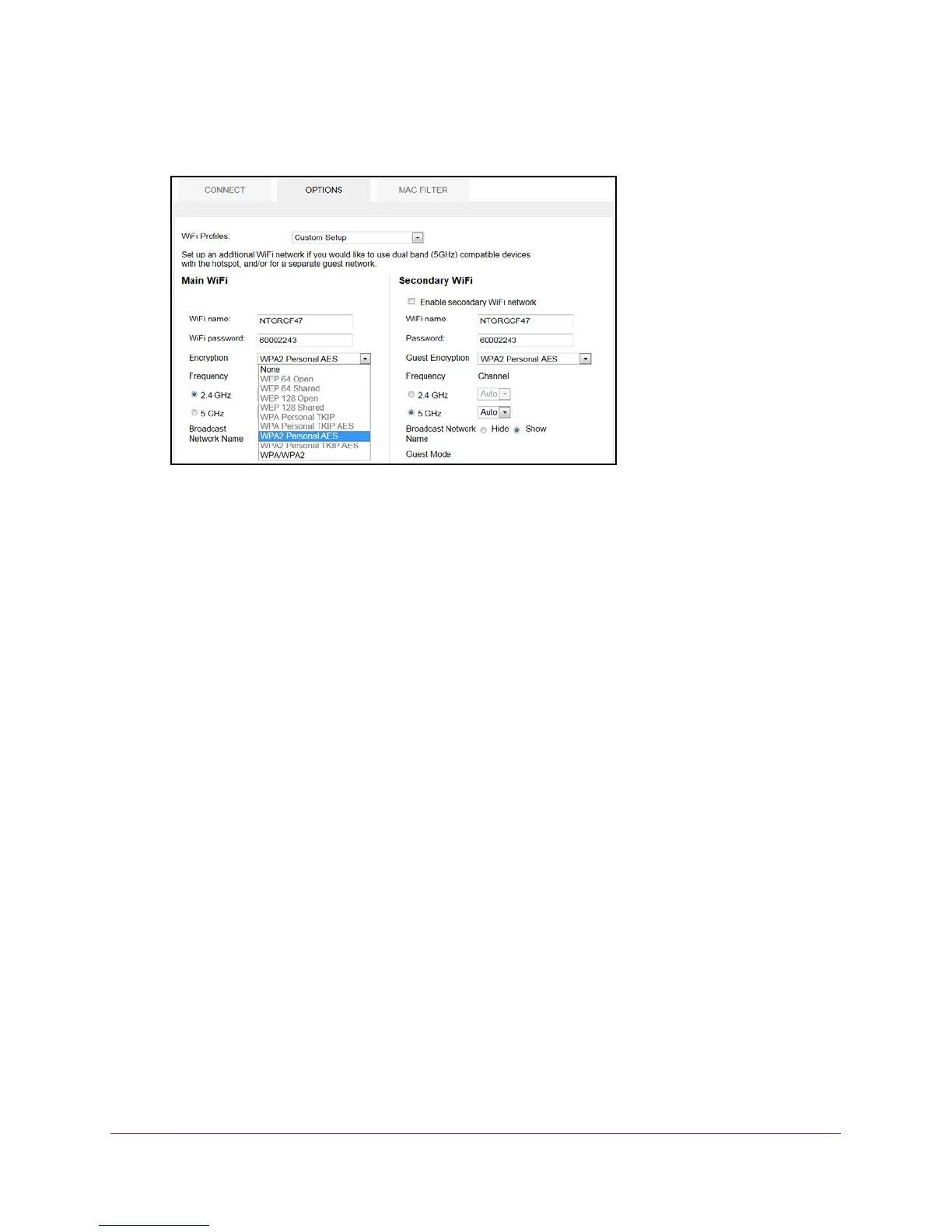 5. From the Encryption list (for main WiFi) or Guest Encryption list (for guest WiFi), select a