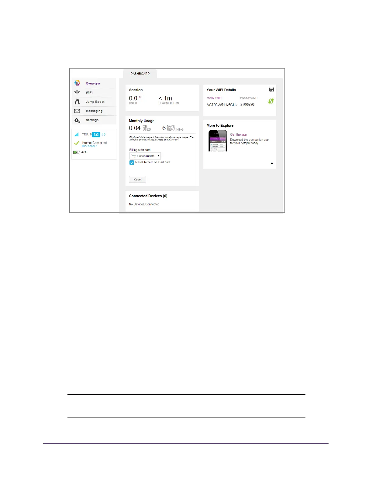 The hotspot web page displays the data usage for the current billing cycle and for the