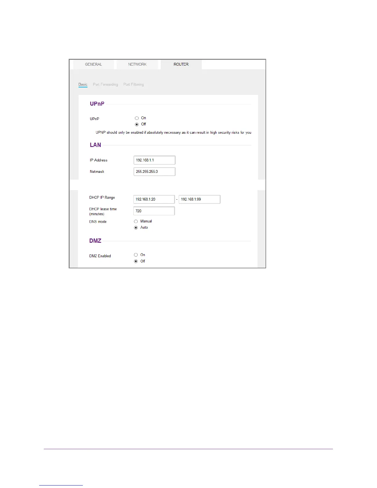 5. In the DMZ section, select the On radio button next to DMZ Enabled.