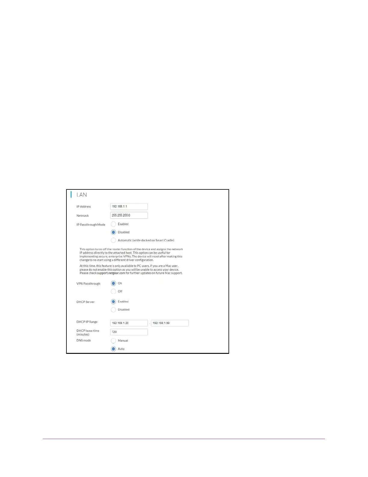 5. In the LAN section, select the VPN Passthrough On radio button.