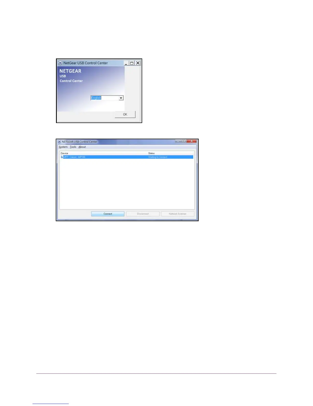 Some firewall software, such as Comodo, blocks NETGEAR USB Control Center from