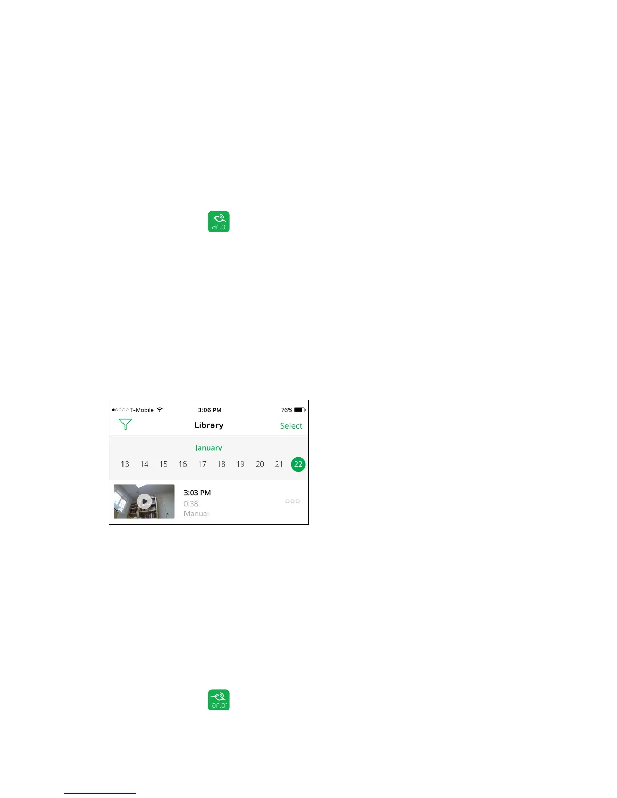 Your Arlo Baby camera stores recordings and snapshots in the library. You can use