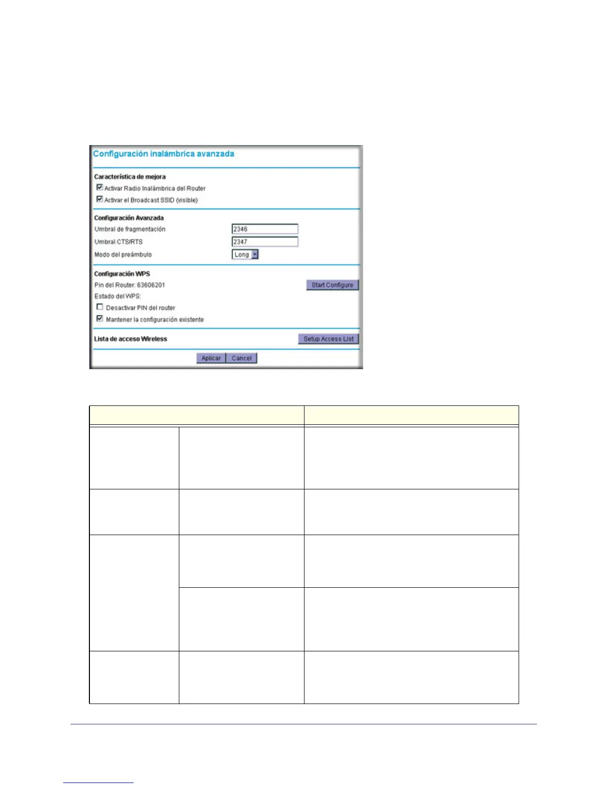 The following table describes the fields in the Advanced Wireless Settings screen.