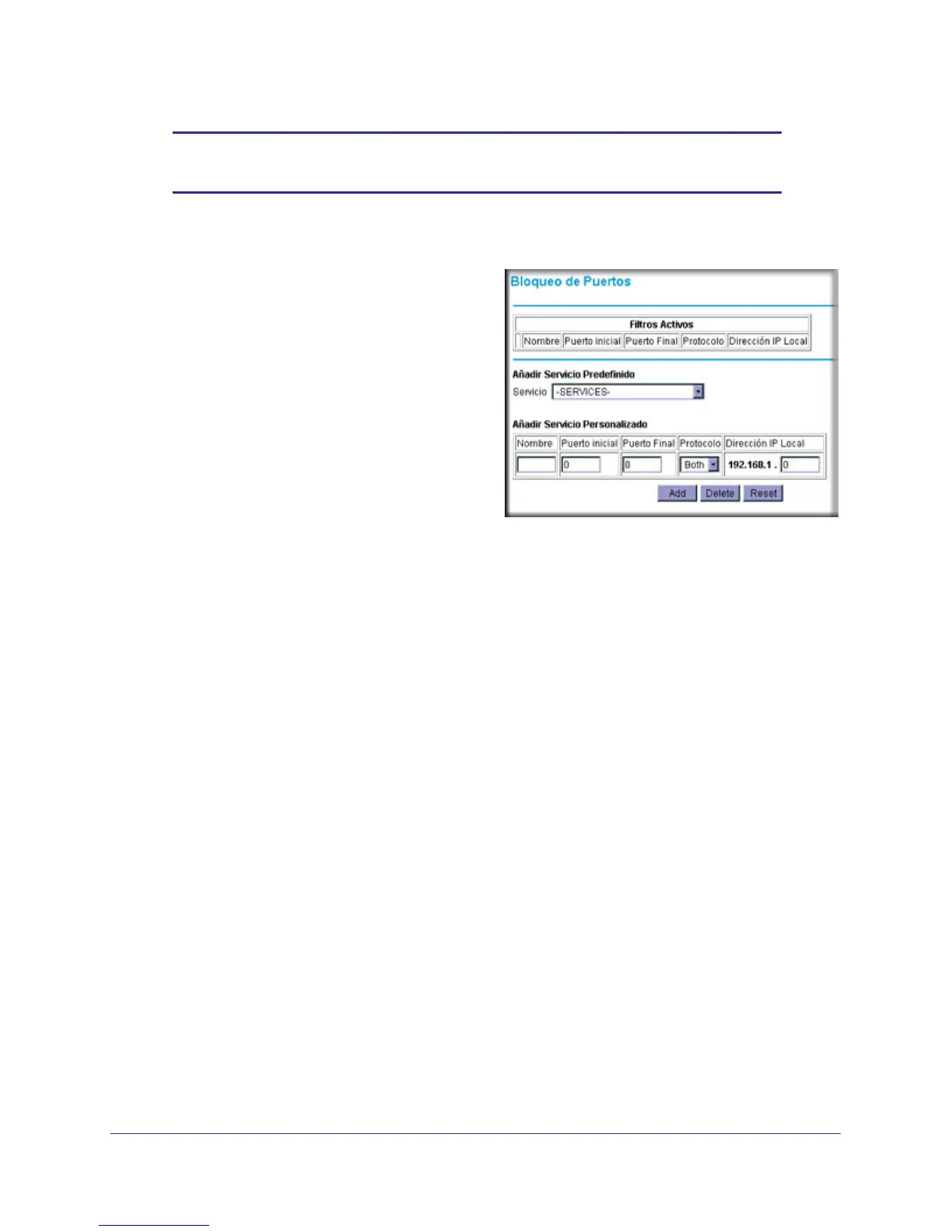• Click Add to save your settings. The Active Filters table now displays the list of ports