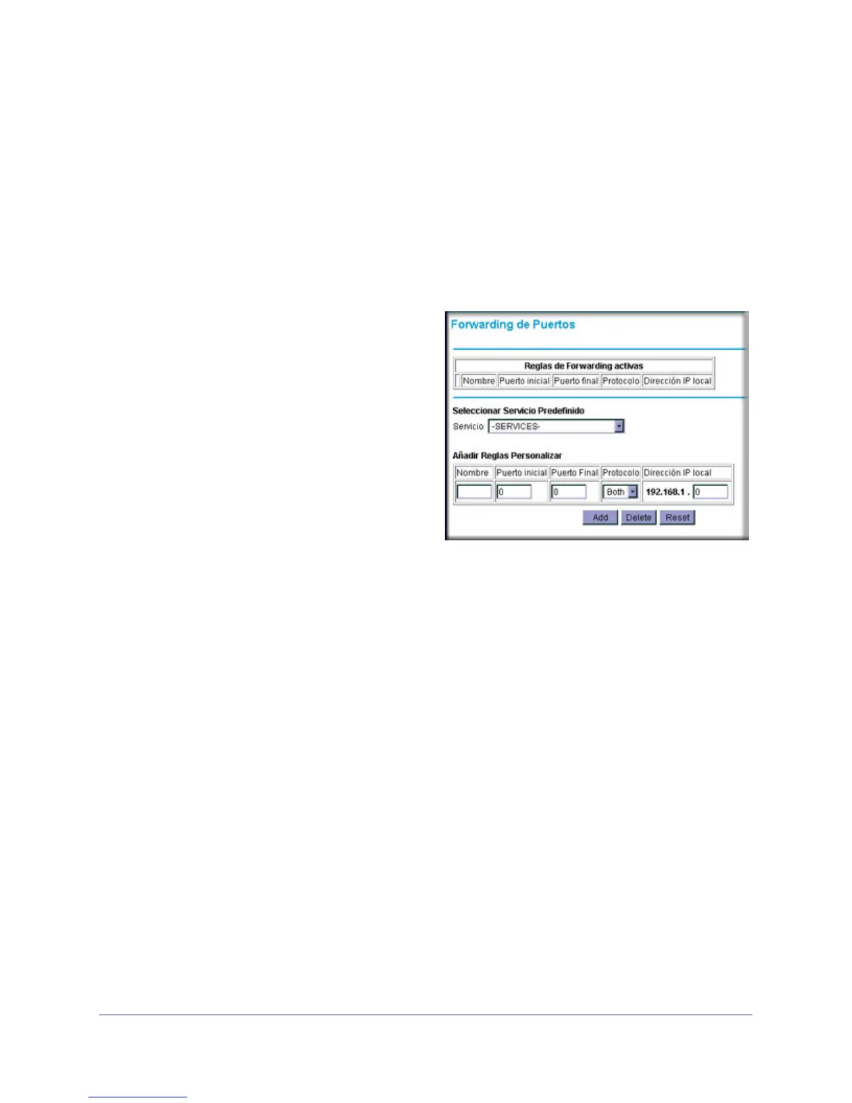 • Click Add. The Active Forwarding Rules table displays the list of forwarded ports.