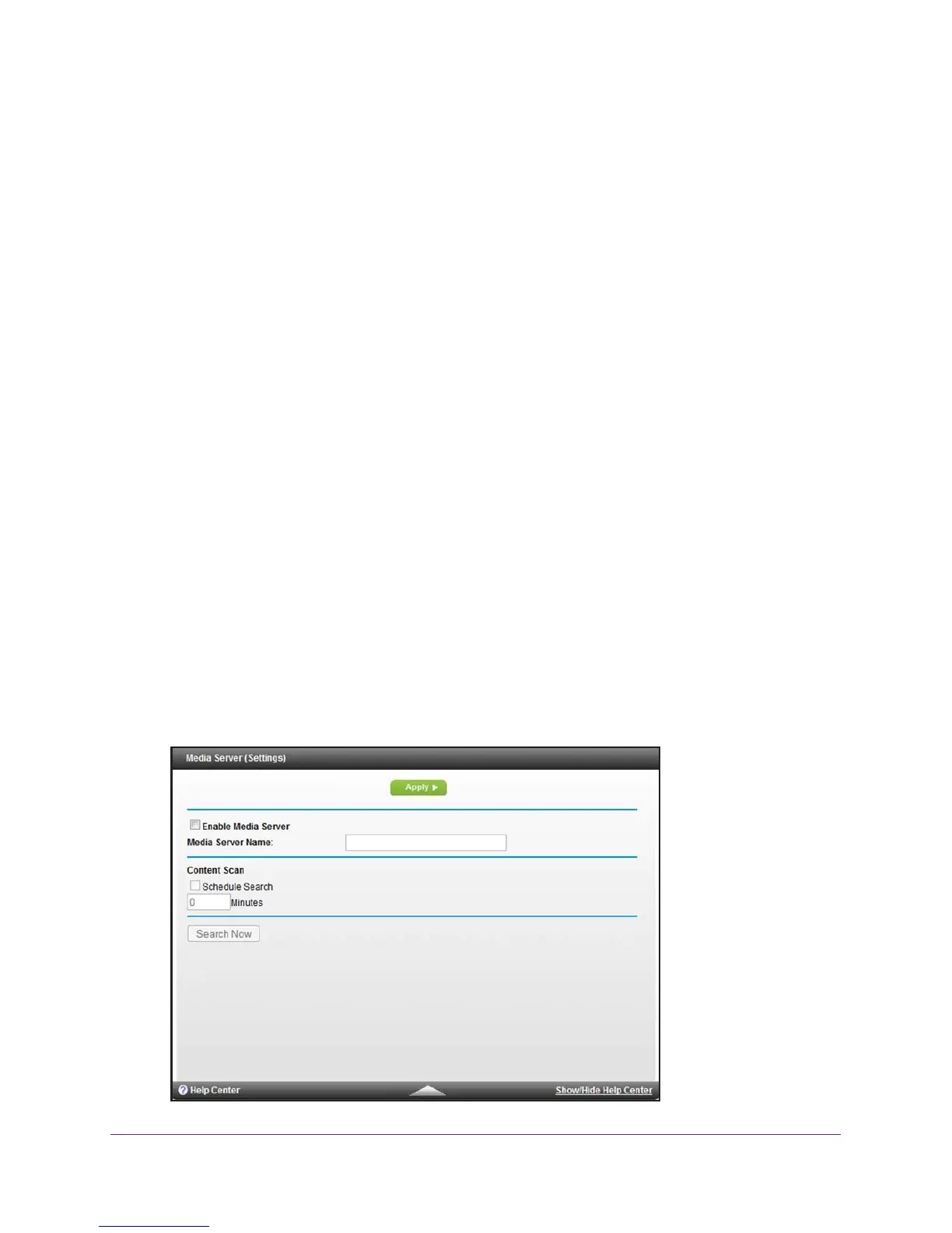 To enable the media server, specify its settings, and scan for media content: