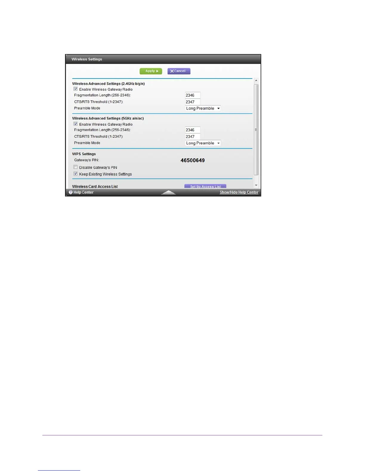 • Fragmentation Length (256-2346), CTS/RTS Threshold (1-2347), and Preamble
