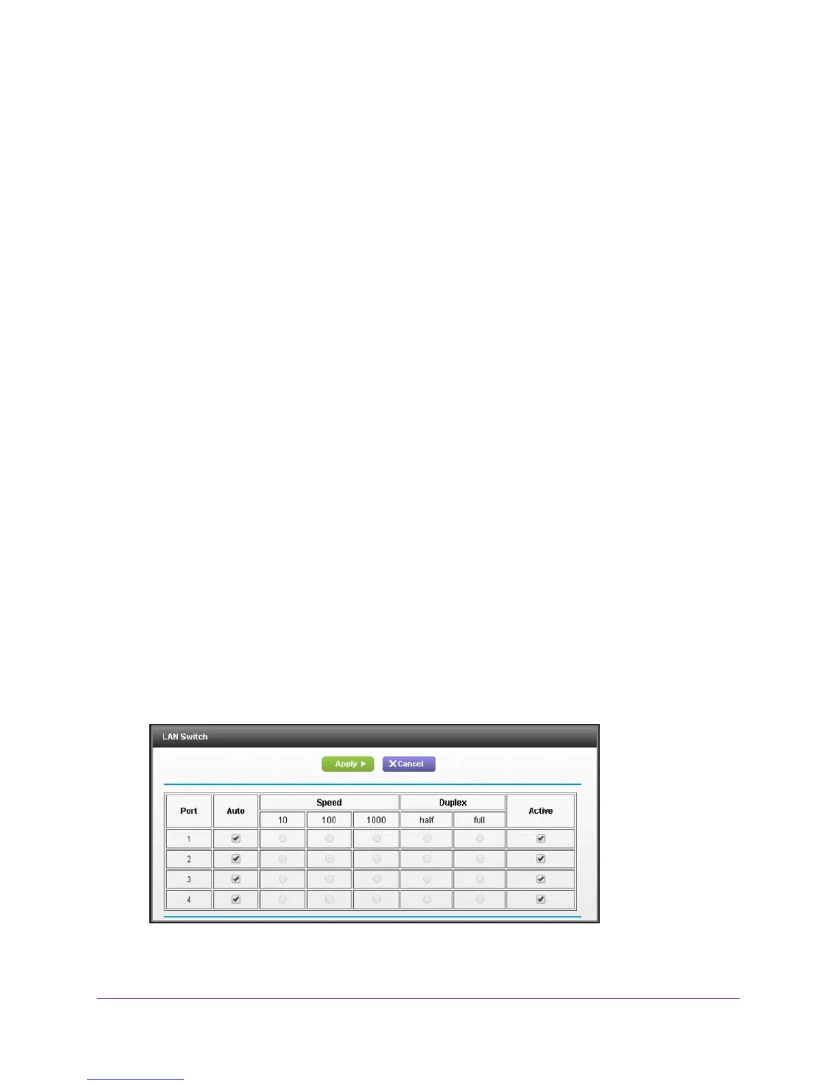 By default, the Auto check box is selected for all Ethernet ports.