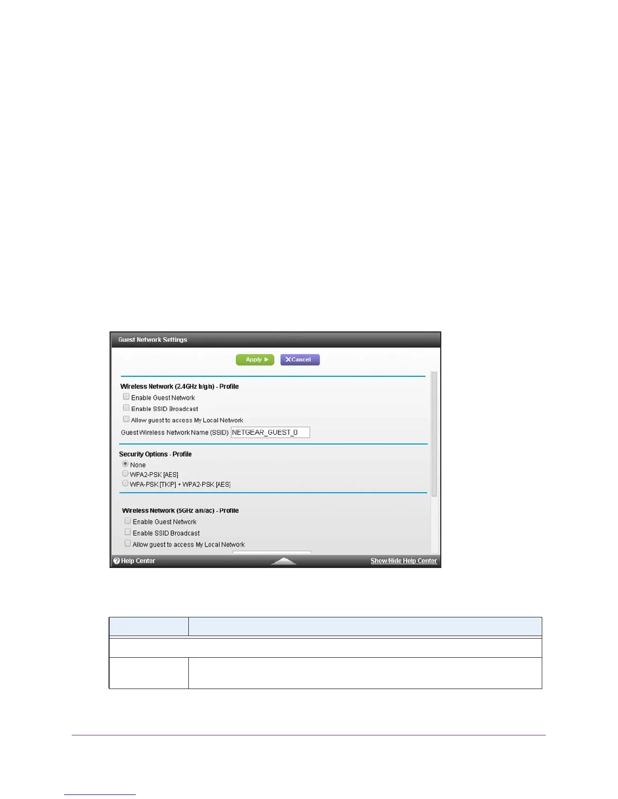 The following table describes the fields on the Guest Network Settings screen.