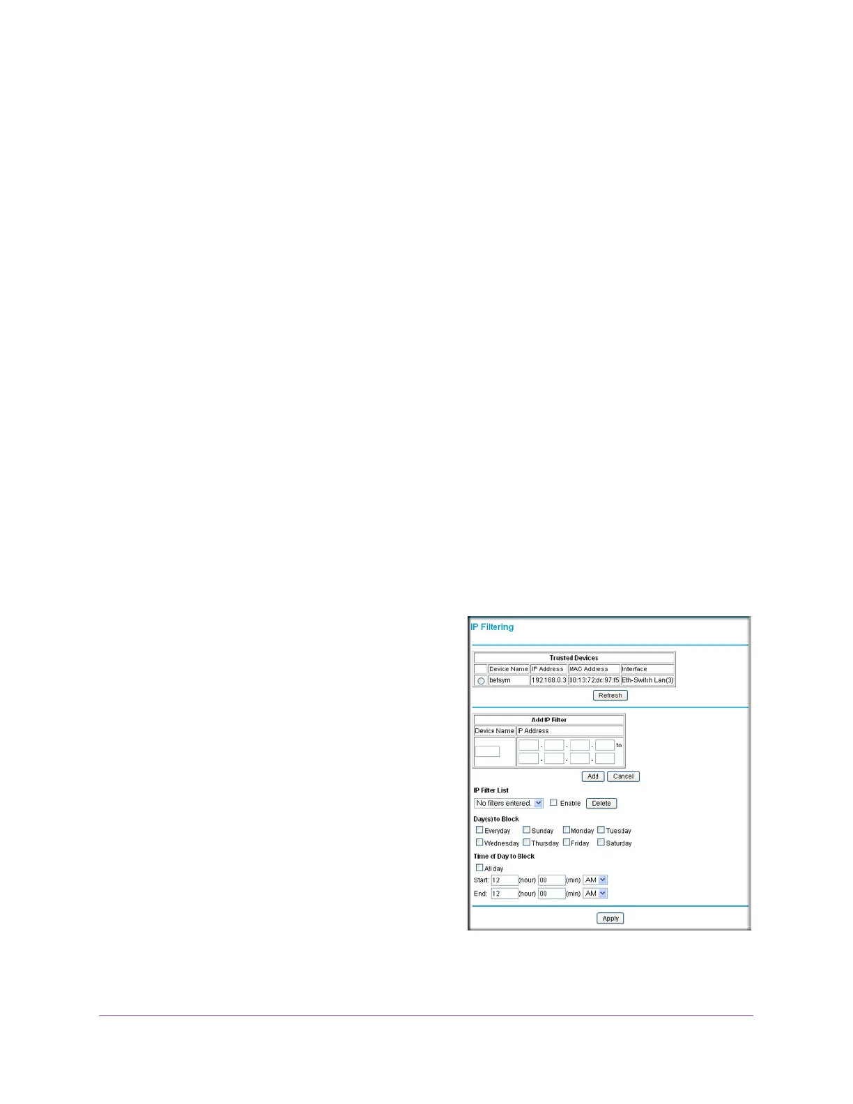• Time of Day to Block. You can specify the time of day to block the computer. The