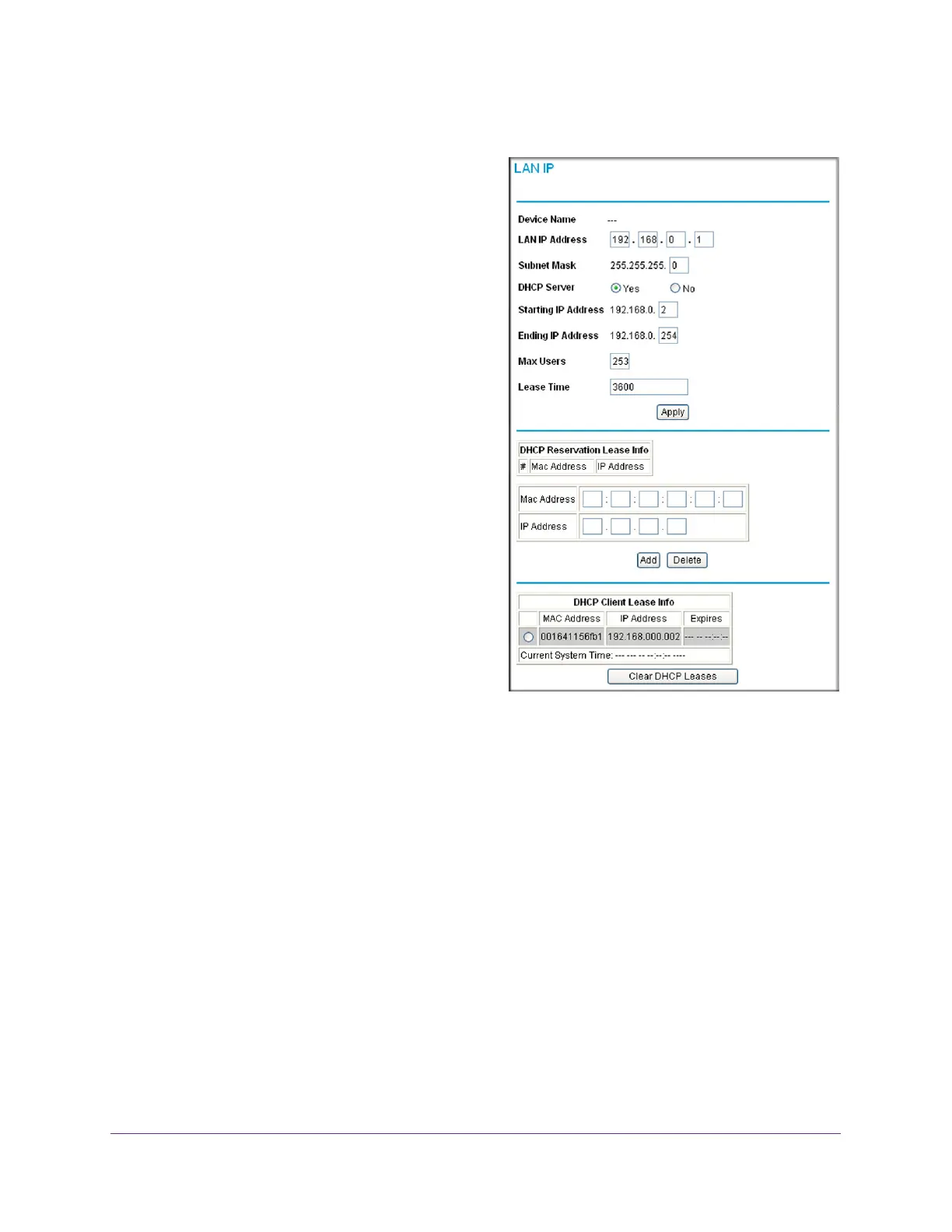 To reserve an IP address for DHCP use, enter the DHCP server reservation settings for the