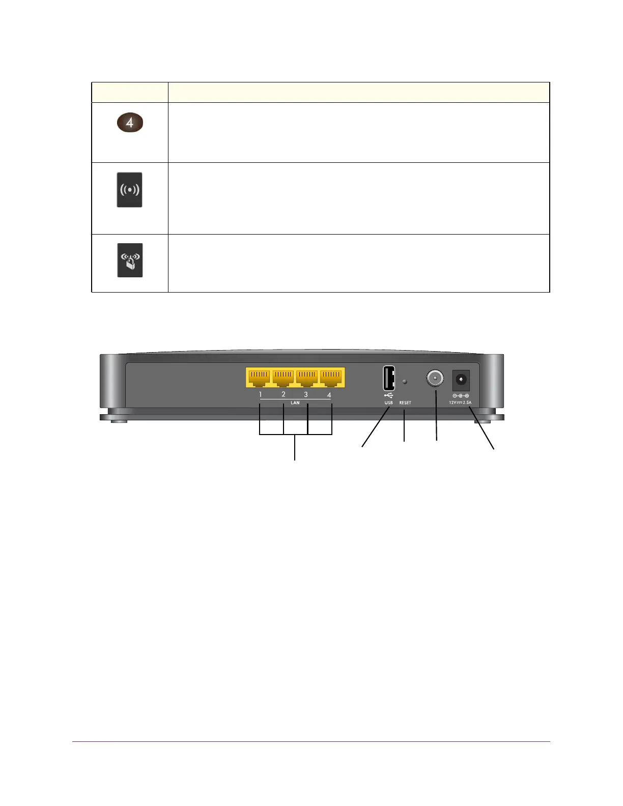 • Four Gigabit Ethernet LAN ports. To connect local computers, use these ports.