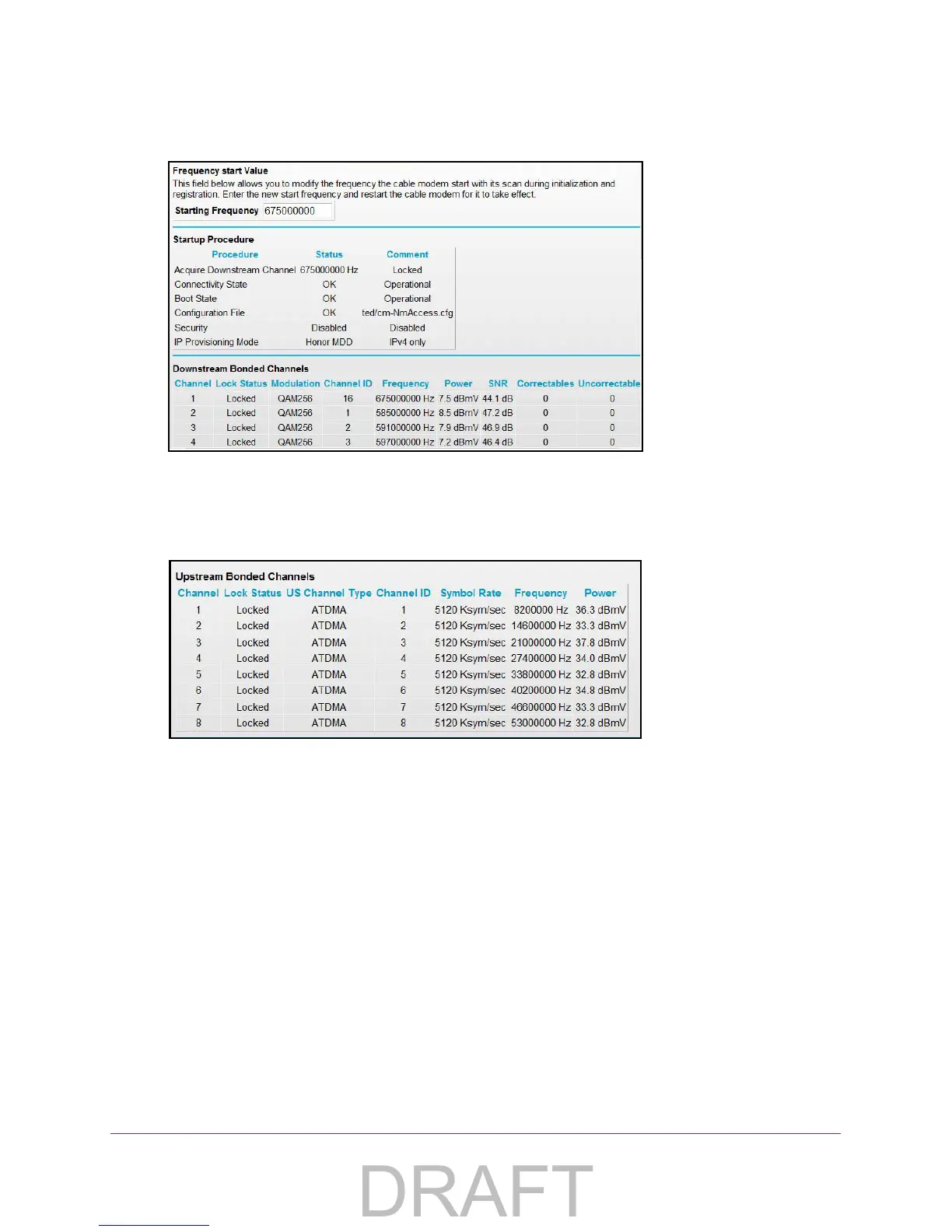 5. To see the Upstream Bonded Channels section and system time, scroll down.