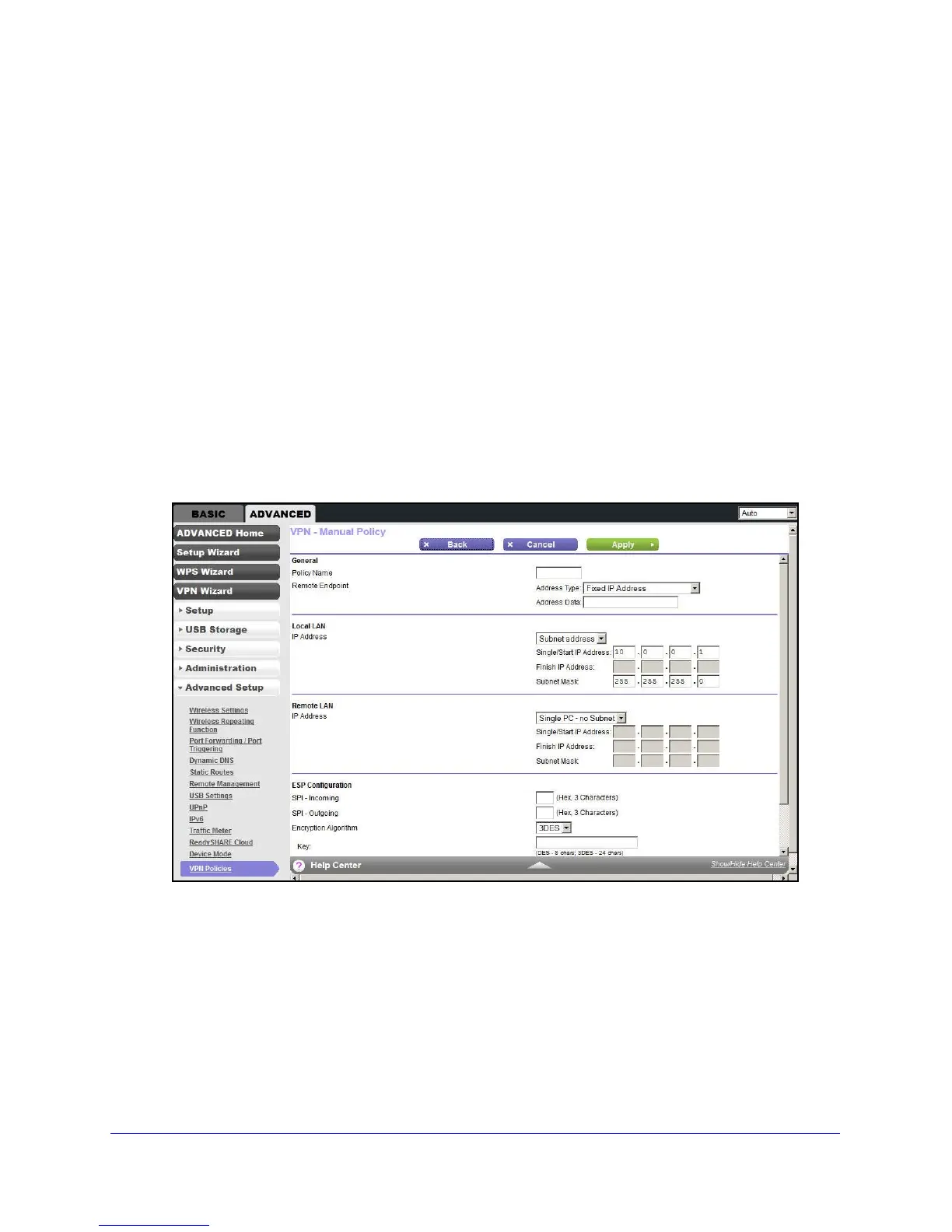 Add or Edit a Manual VPN Policy