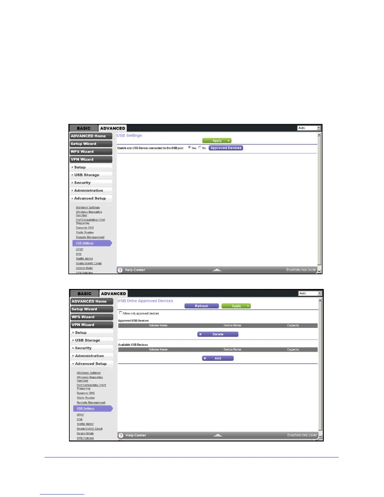 Advanced Setup > USB Settings.