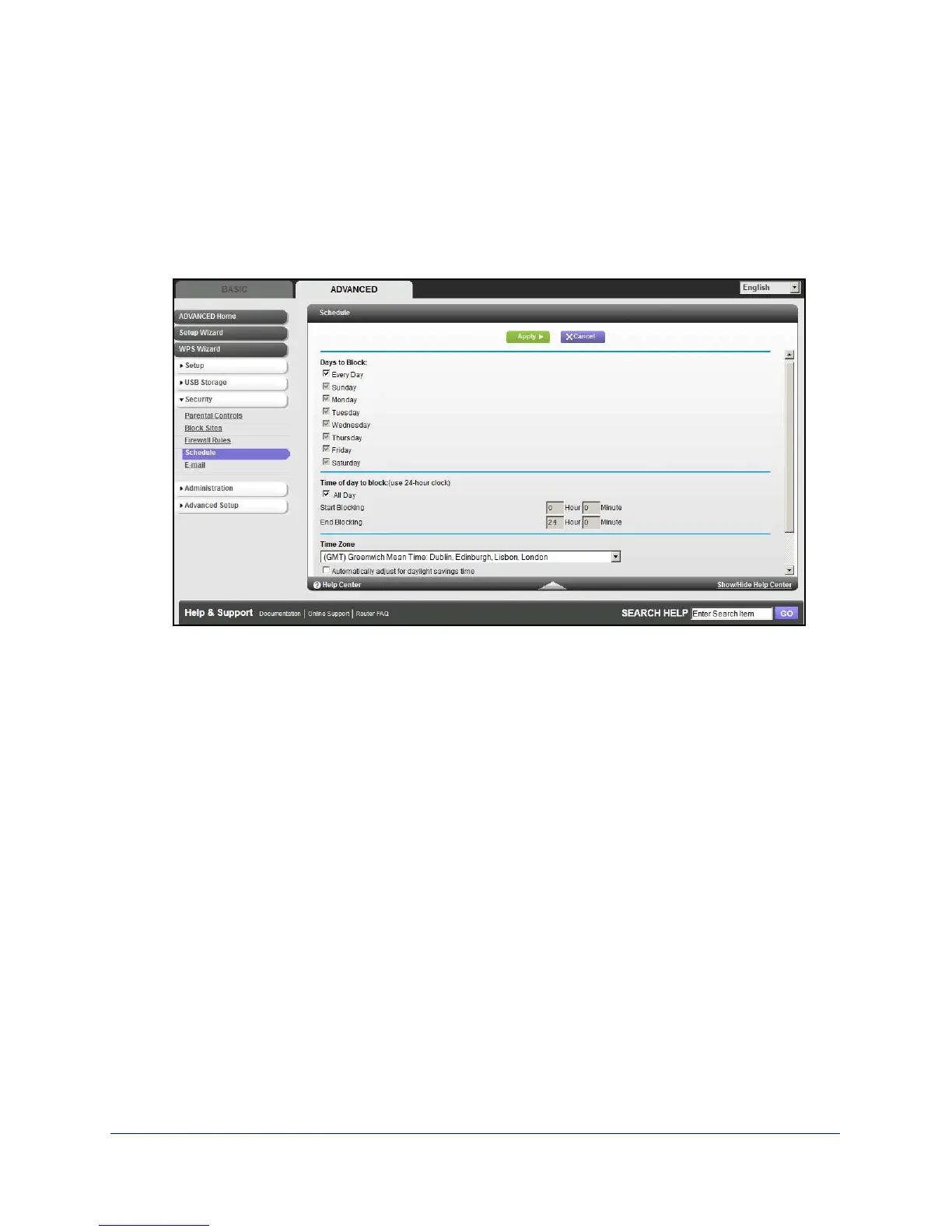 • Time of Day to Block. Select a start and end time in 24-hour format, or select All