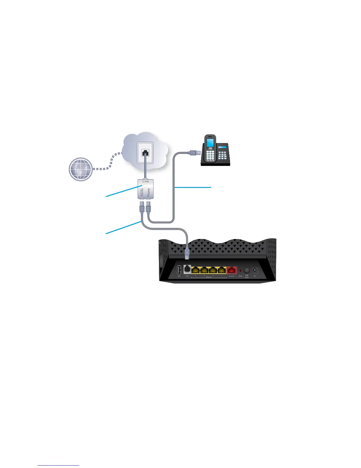b. Use the phone cable to connect the DSL splitter to the DSL