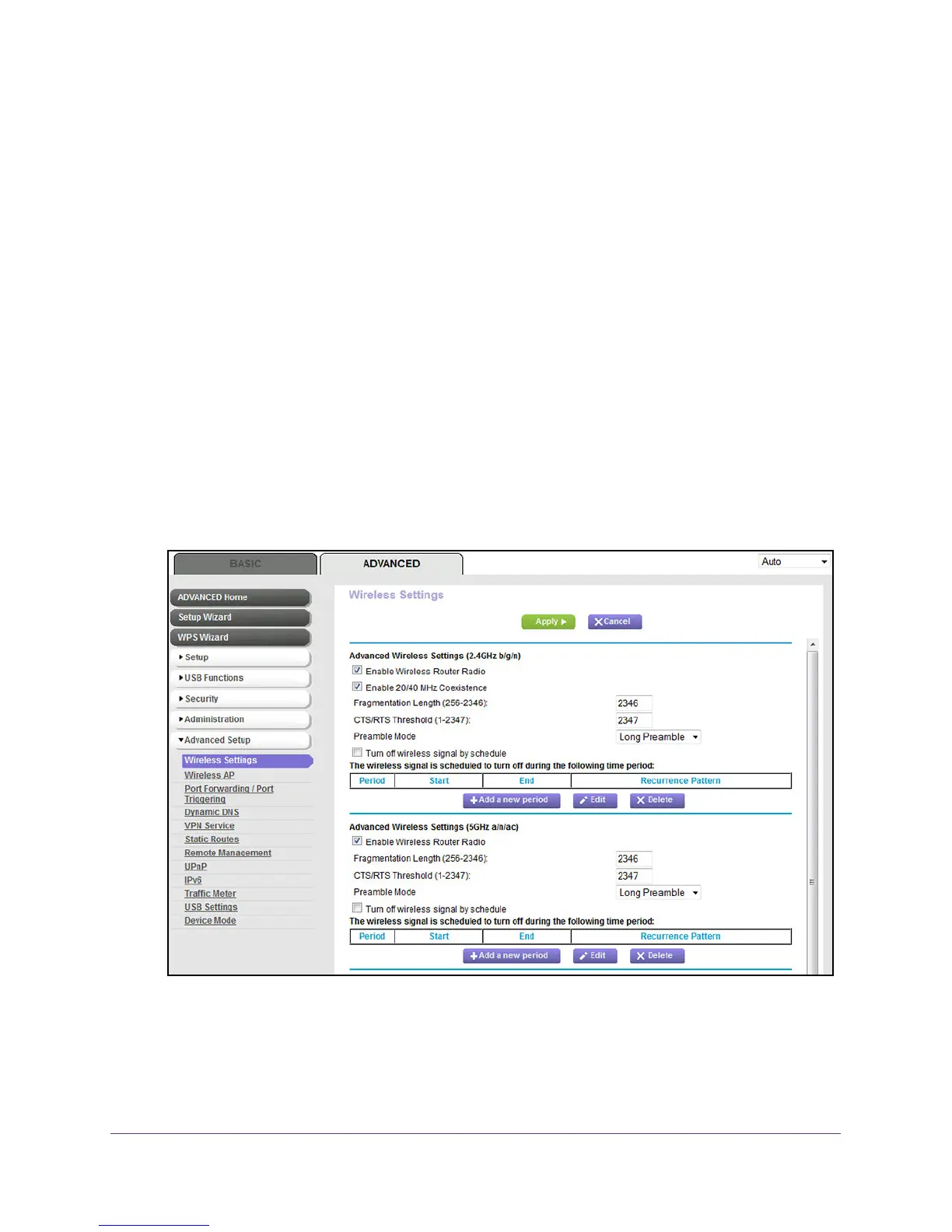 The previous figure does not show the bottom of the Wireless Settings screen.