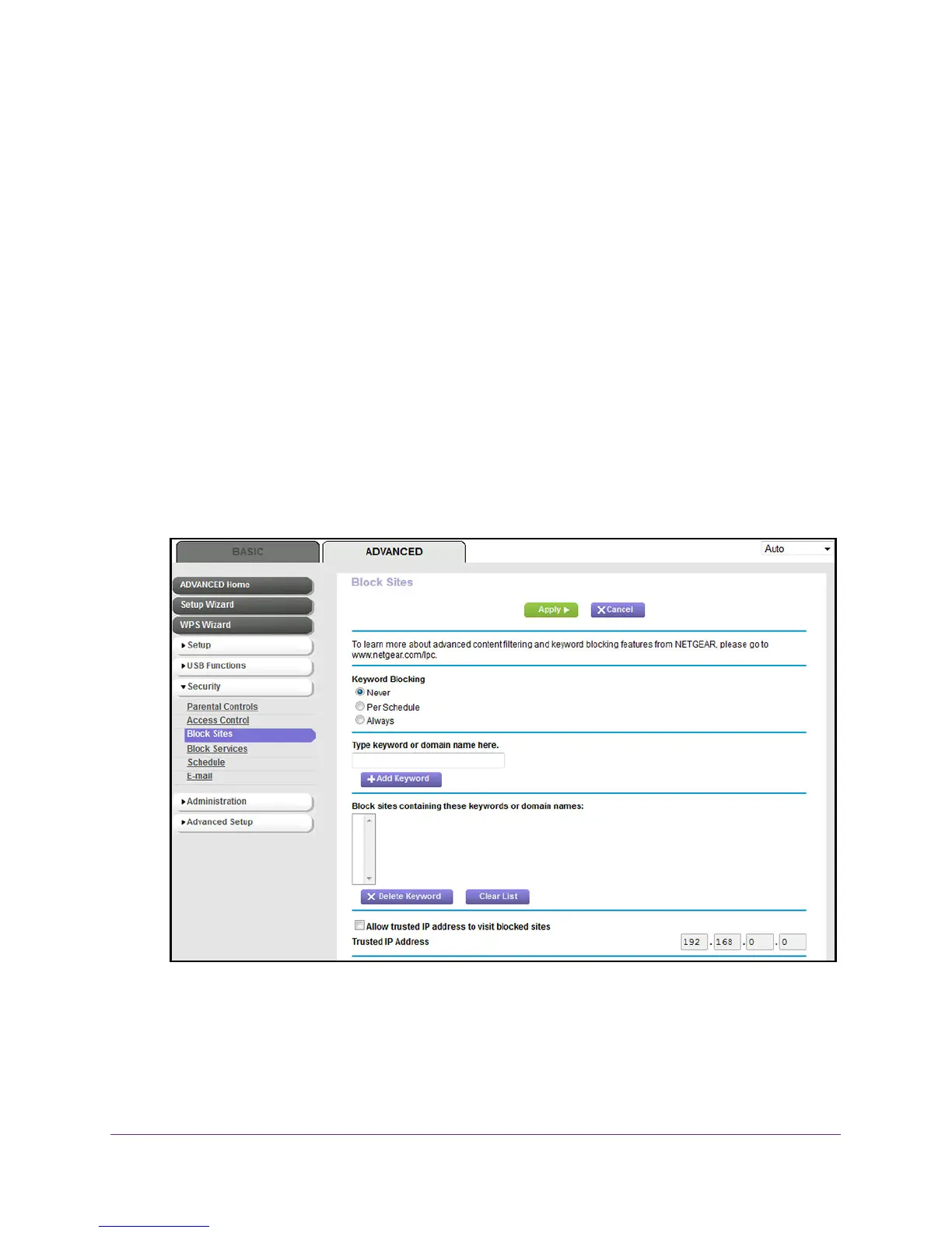 • Per Schedule. Use keyword blocking according to a schedule that you set.