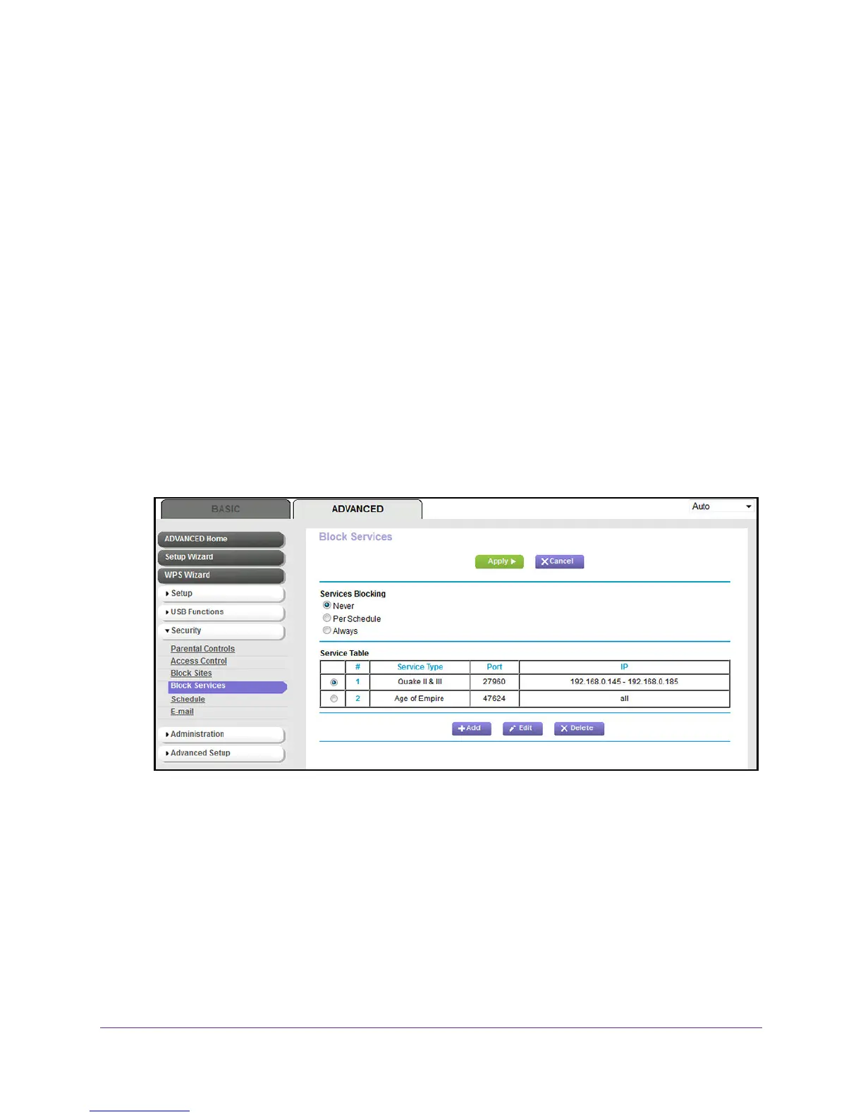 Your settings are saved. The changed rule displays in the Service Table on the Block
