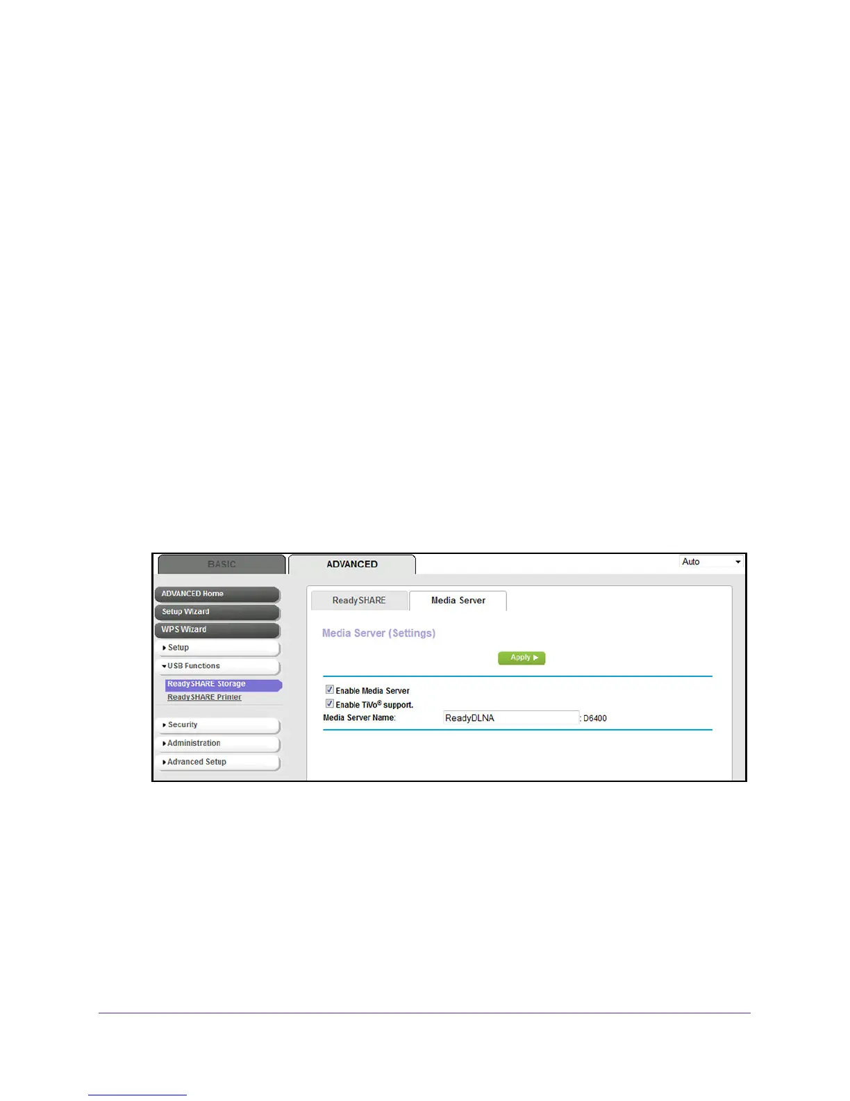 • Enable TiVo support. Select this check box if you want to play ReadyNAS media or