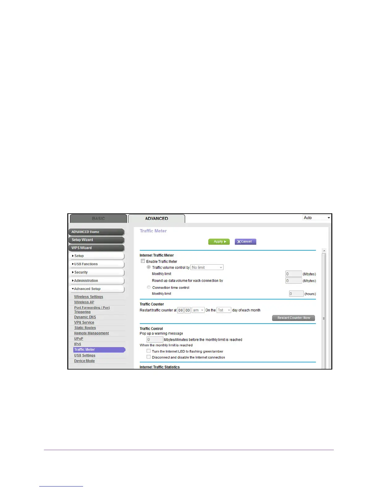 You can record and restrict the traffic by volume in MB. This is useful when your ISP
