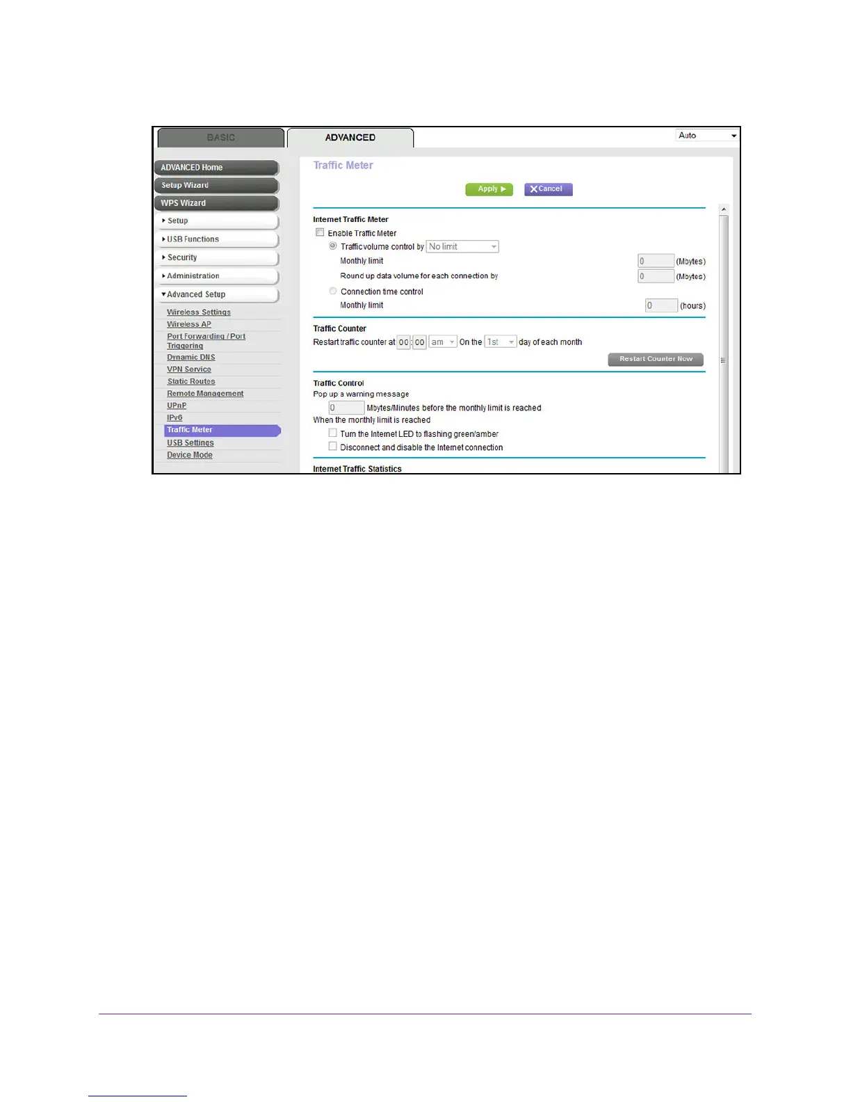 10. In the Traffic Control section, enter a value in minutes to specify when the modem router