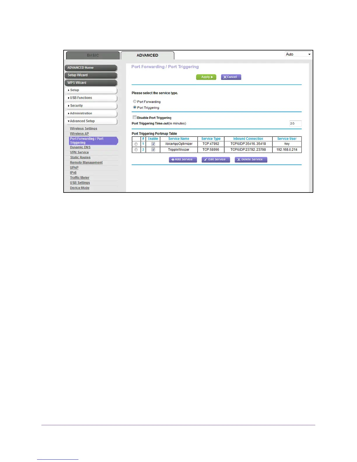For more information about the settings, see Add a Port Triggering Rule on page 268.