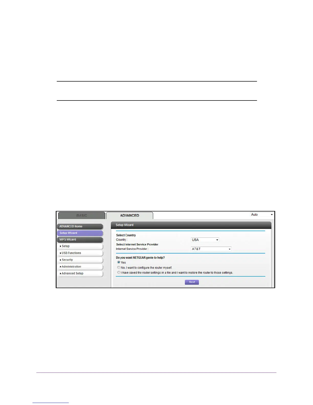 Note: The Setup Wizard is the same as the NETGEAR genie automatic setup