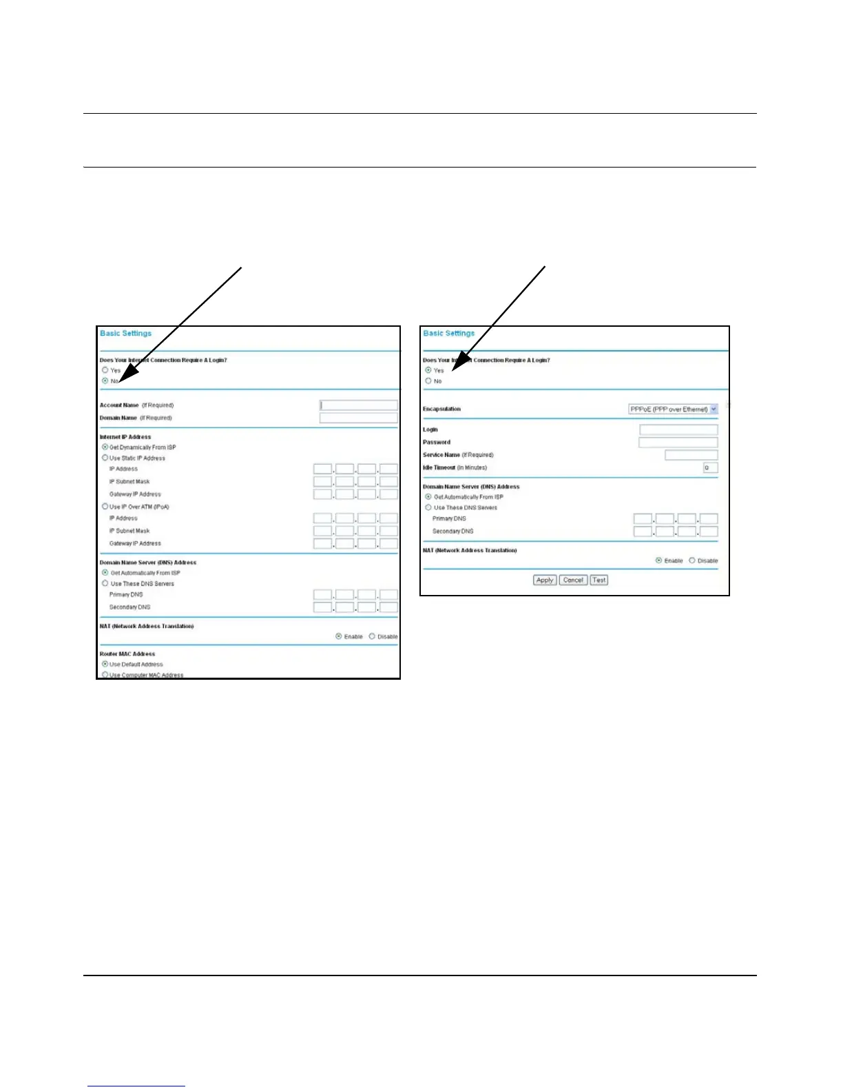 2. Select No to manually configure your router connection.