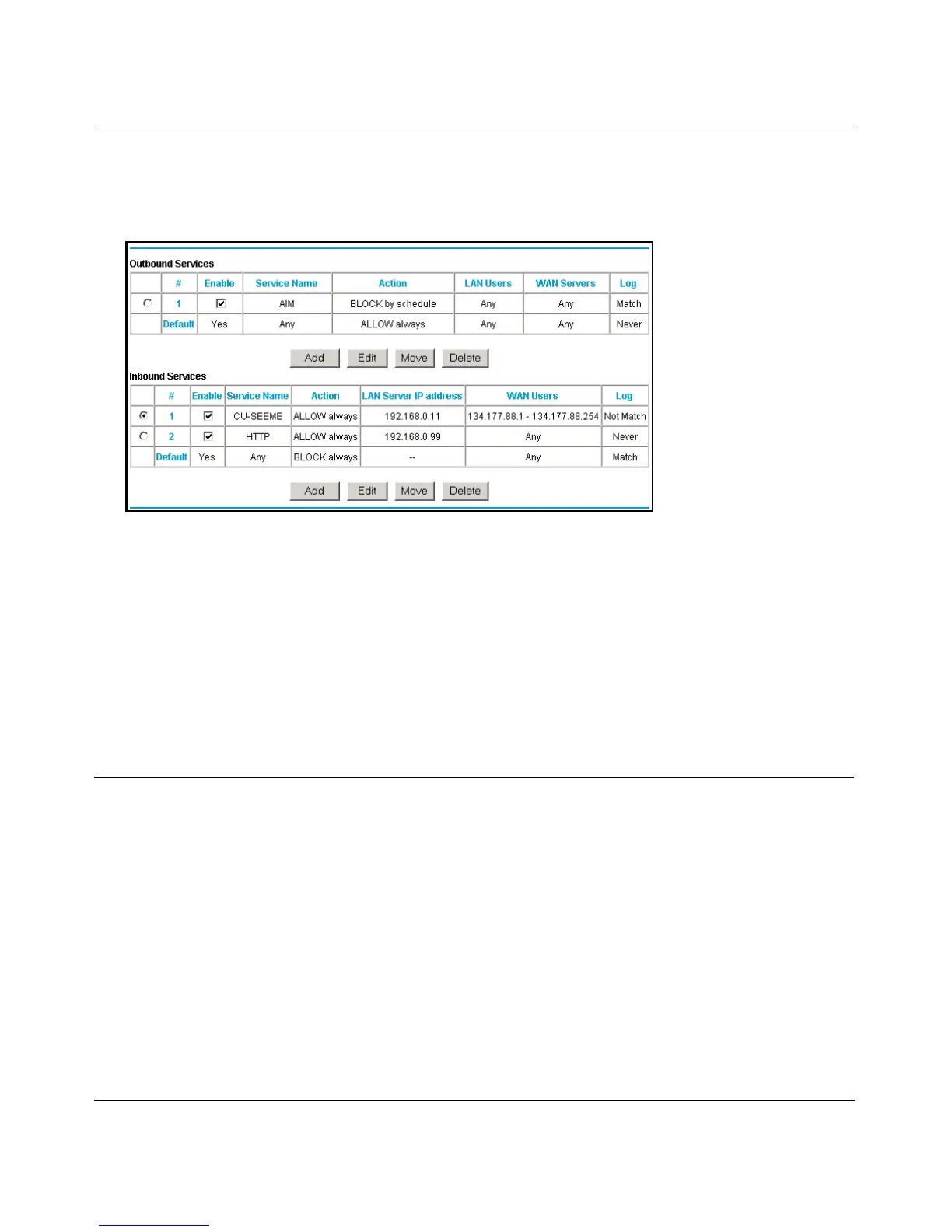 determining the disposition of a packet. The Move button allows you to relocate a defined rule to a