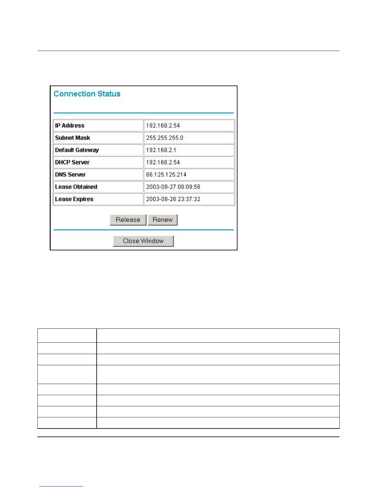 Figure 5-5:  Connection Status screen for Dynamic IP