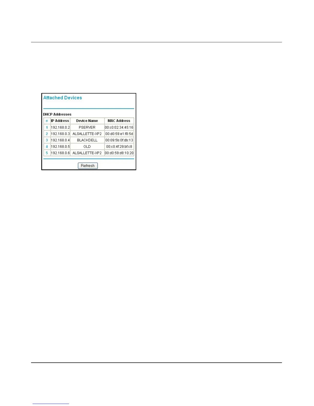 The Attached Devices menu contains a table of all IP devices that the router has discovered on the