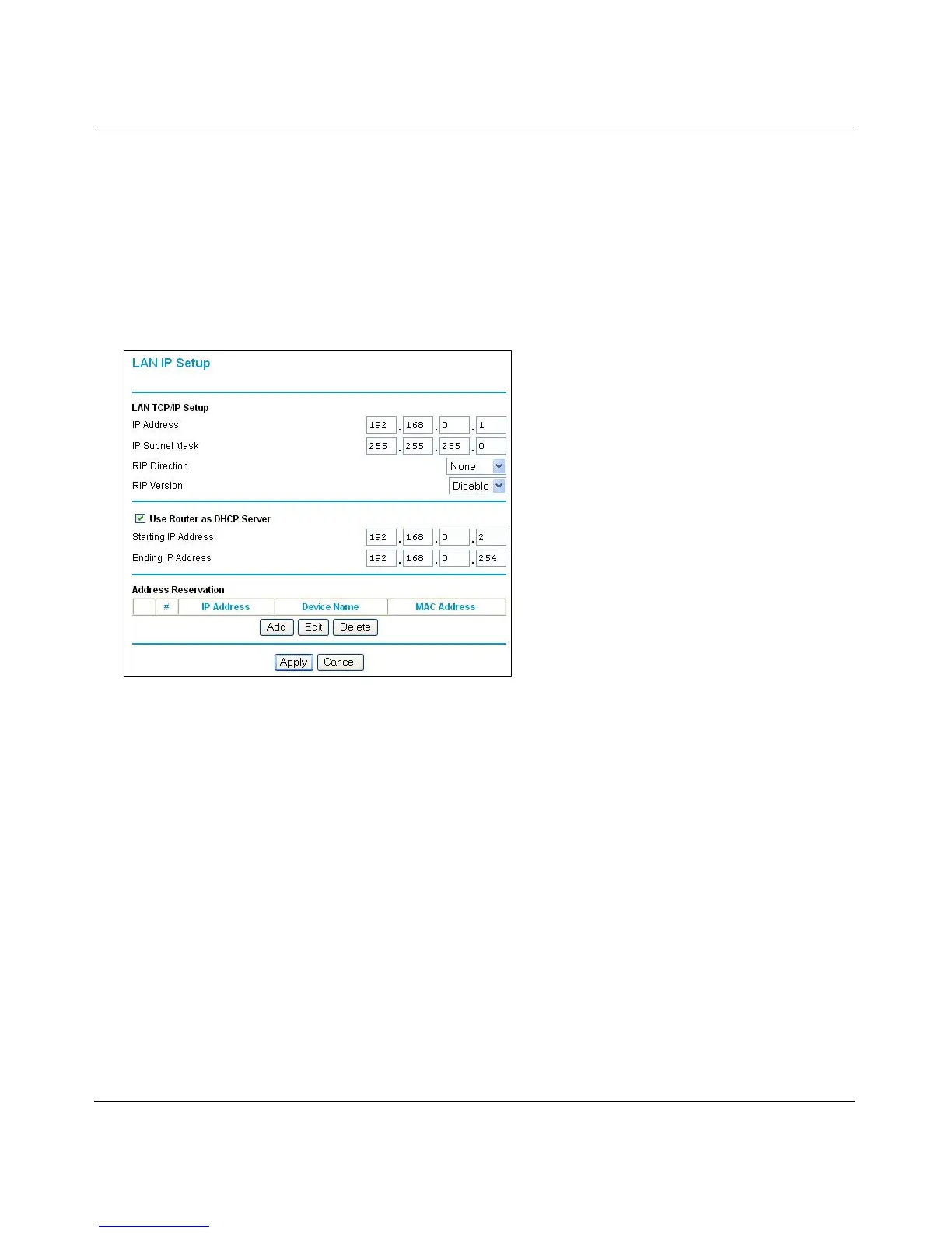 2. From the Main Menu, under Advanced, click the LAN IP Setup link to view the menu, shown