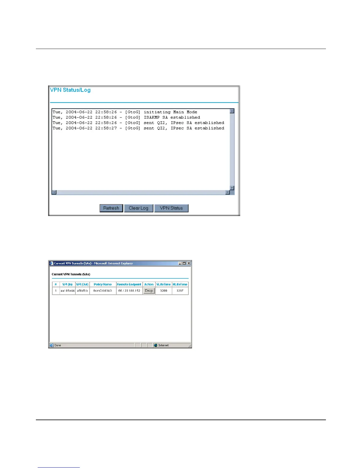 2. Open the DG834 management interface and click on VPN Status to get the VPN Status/Log