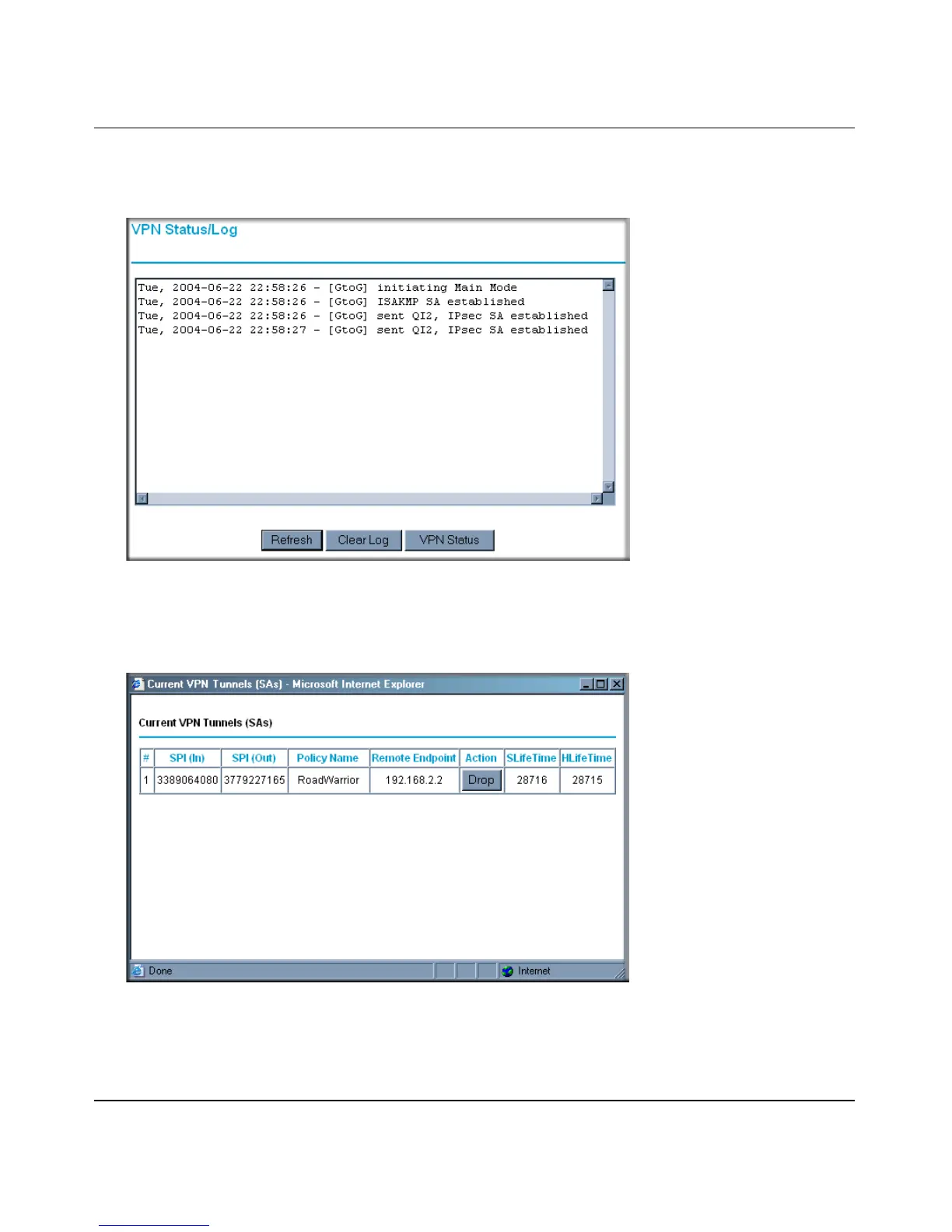 3. Click VPN Status (Figure 7-38) to get the Current VPN Tunnels (SAs) screen (Figure 7-39).