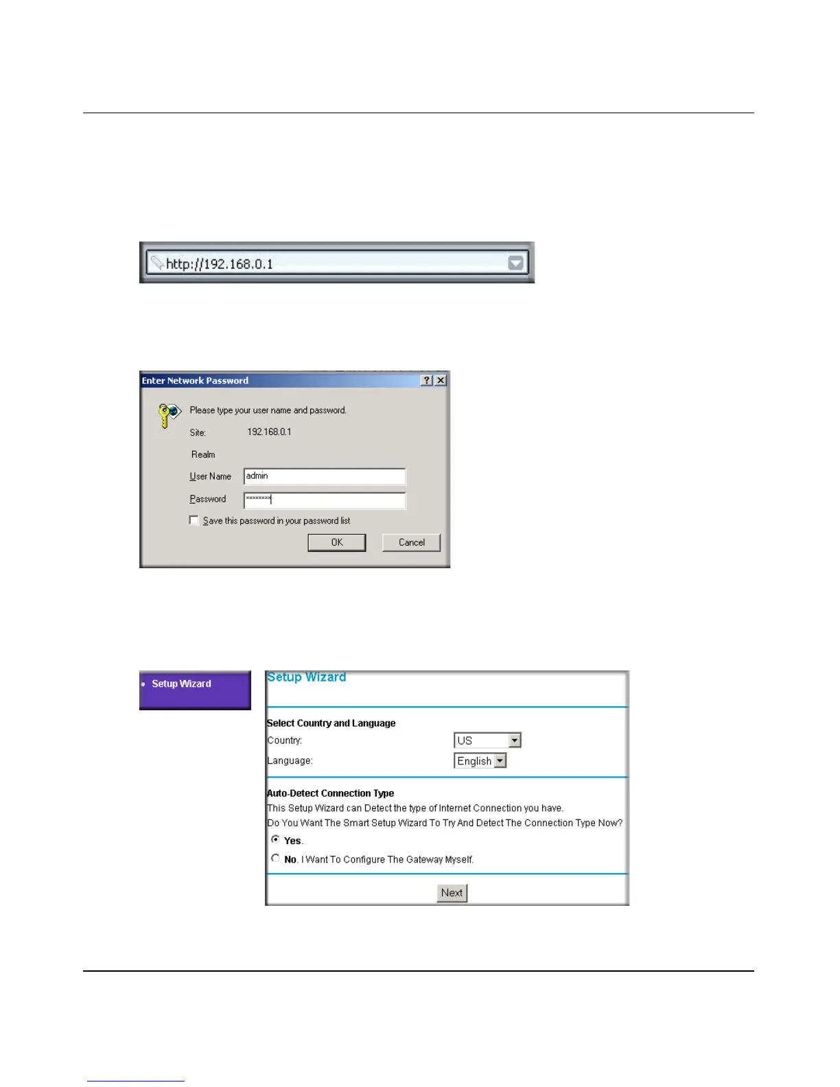 a. Connect to the router by typing http://192.168.0.1 in the address field of Internet Explorer