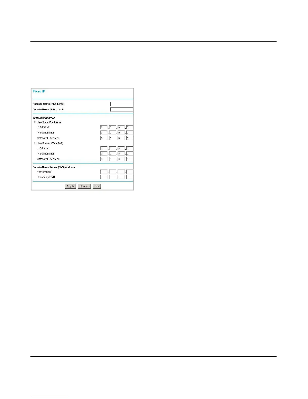 http://www.netgear.com to a numeric IP address. For a fixed IP address configuration, you