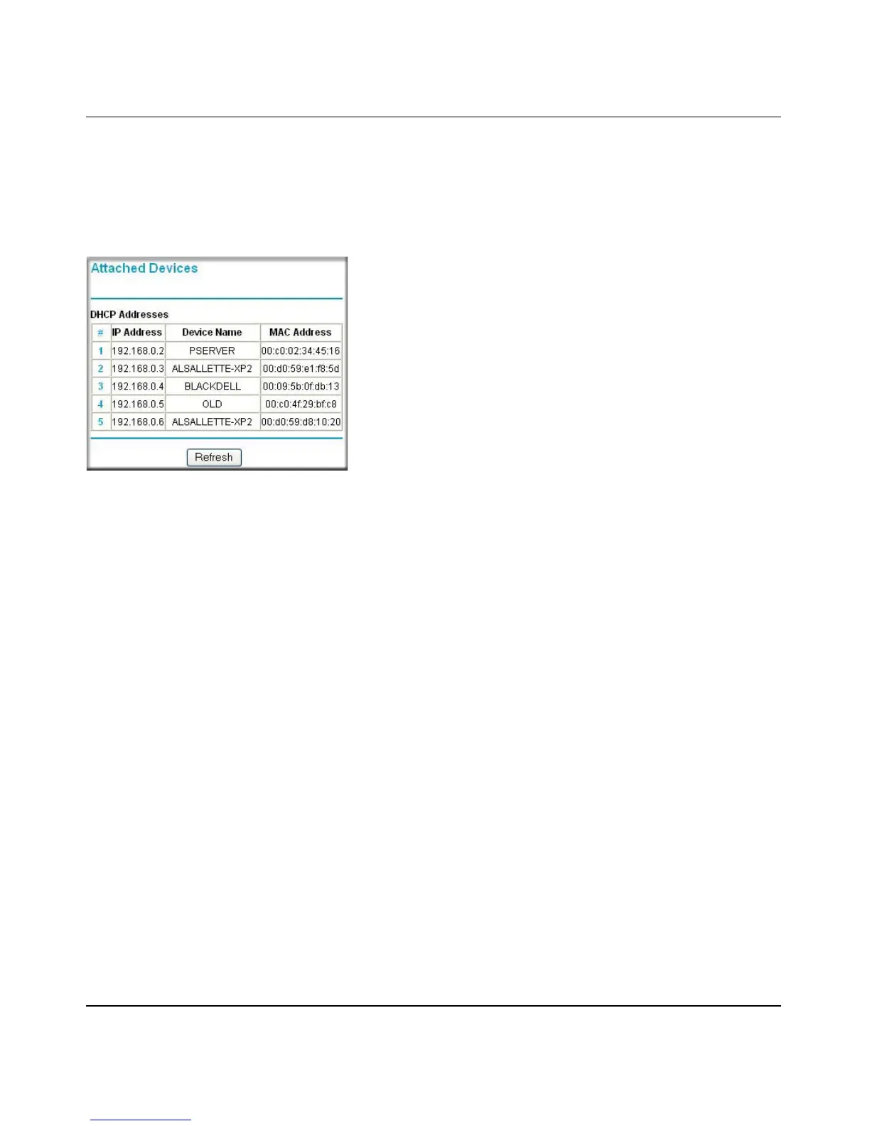 devices. To force the router to look for attached devices, click the Refresh button.