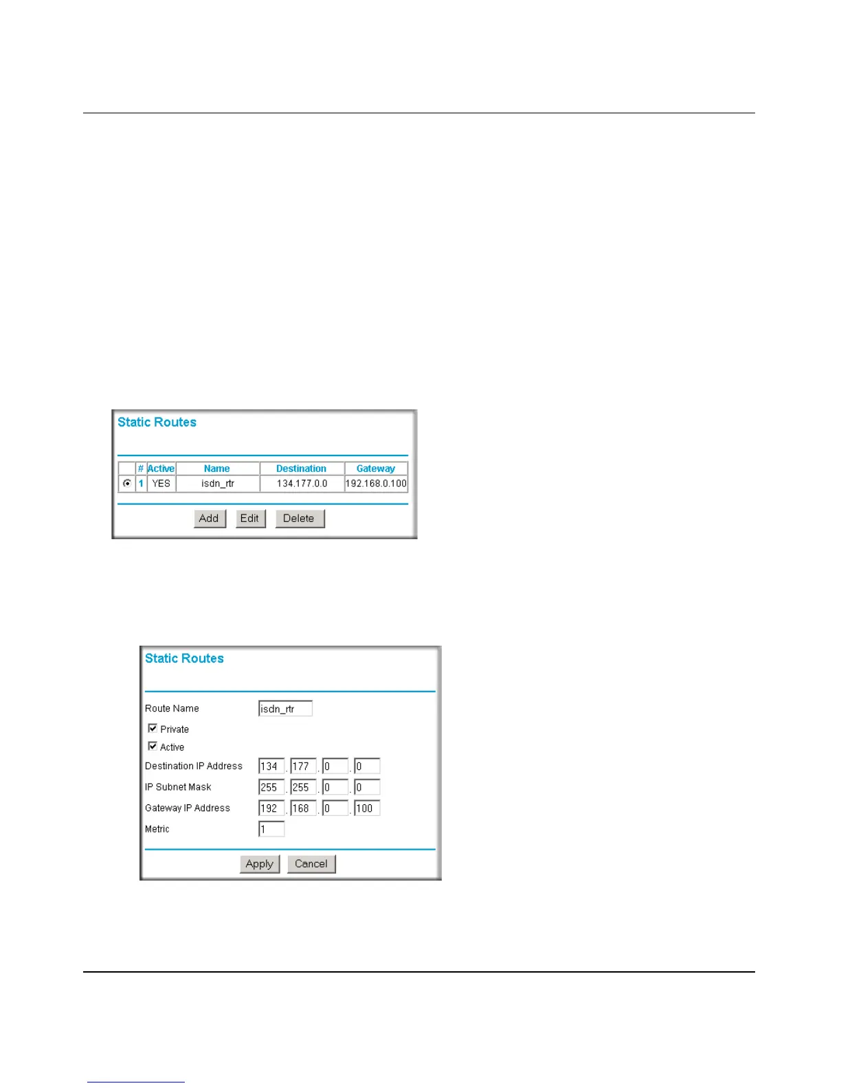 • A Metric value of 1 will work since the ISDN router is on the LAN.