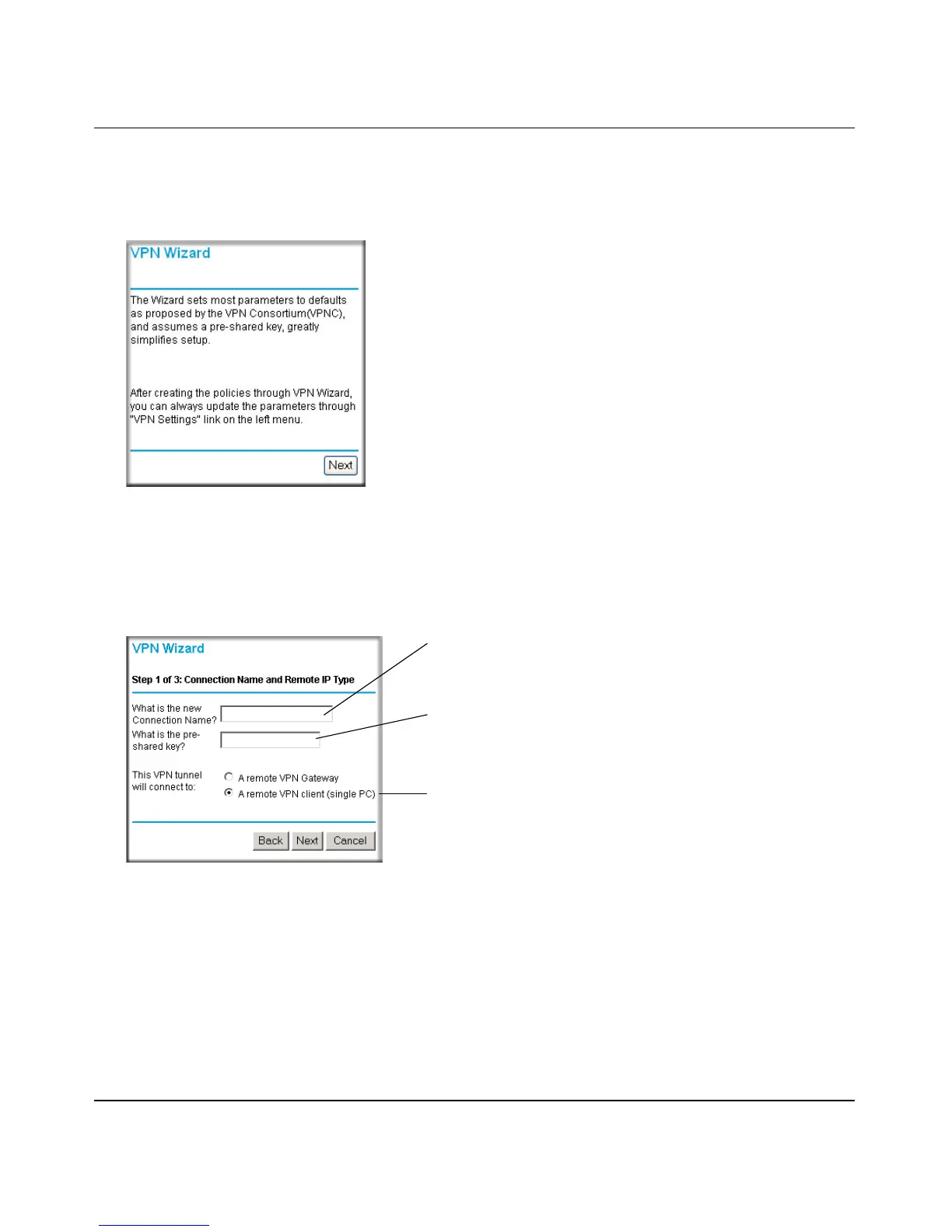 admin and password of password. Click the VPN Wizard link in the main menu to display