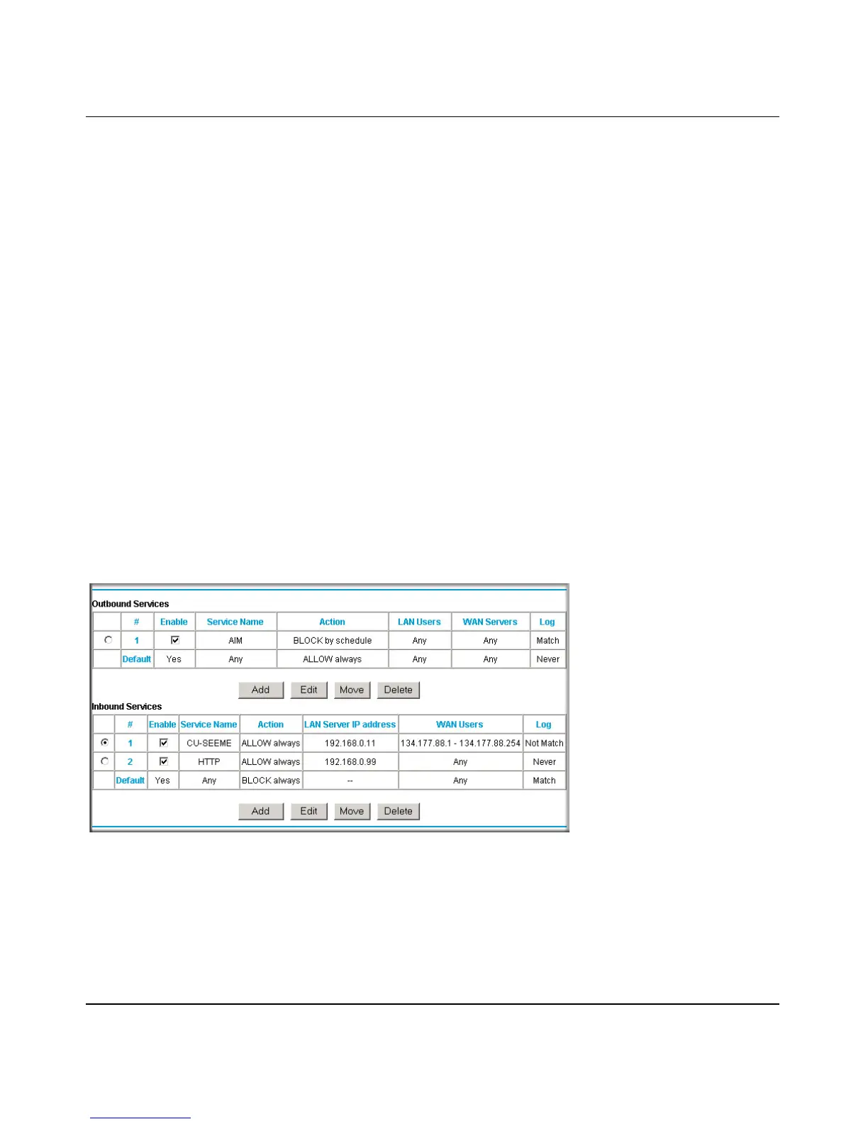 • WAN Users—These settings determine which packets are covered by the rule, based on their