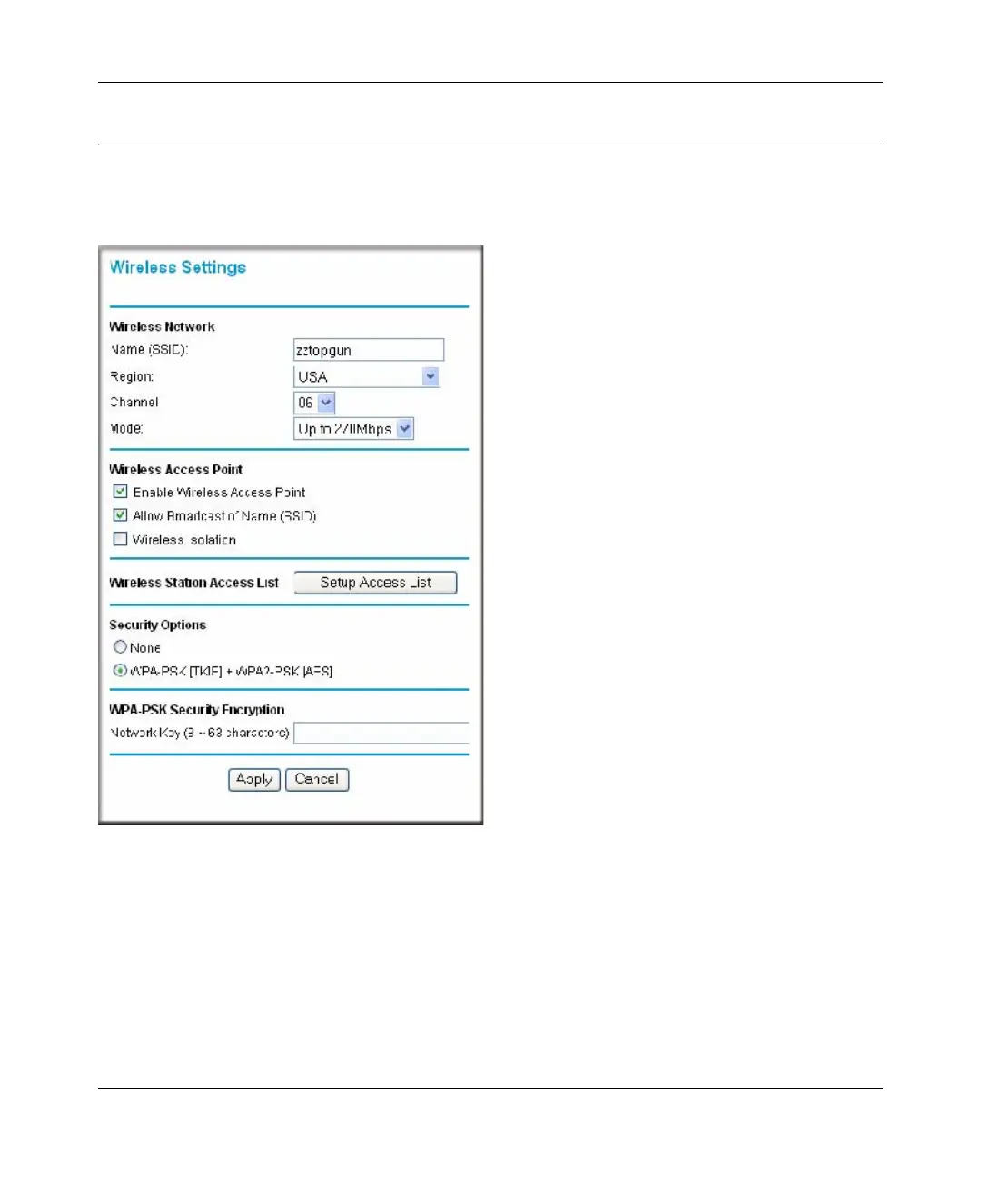 Table 2-1 describes the information that is displayed in the Wireless Settings screen.