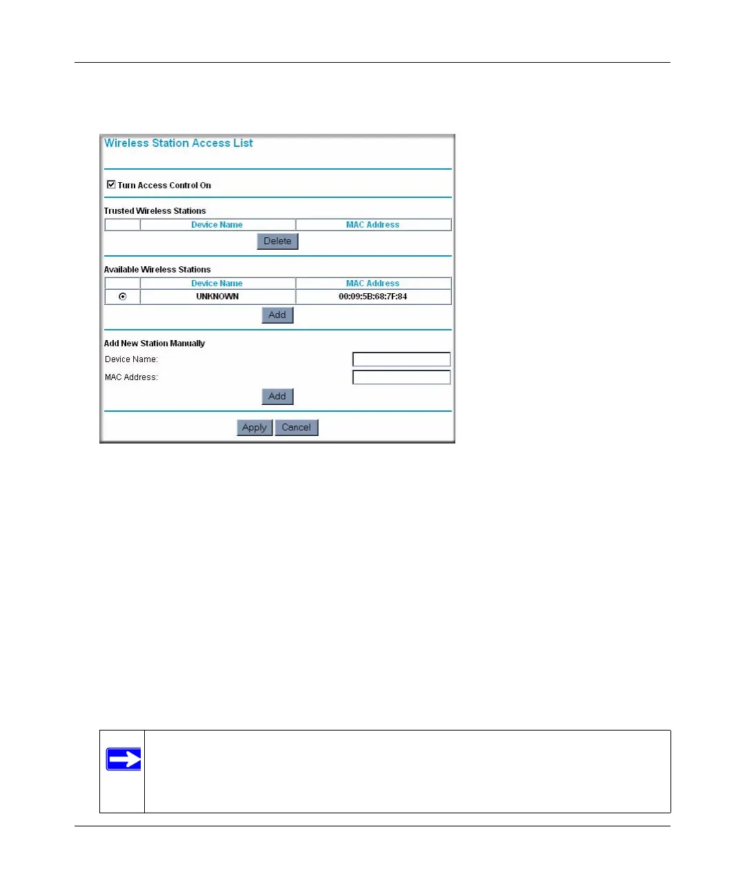 Available Wireless Stations list. Click Add to add the station to the Trusted Wireless Stations